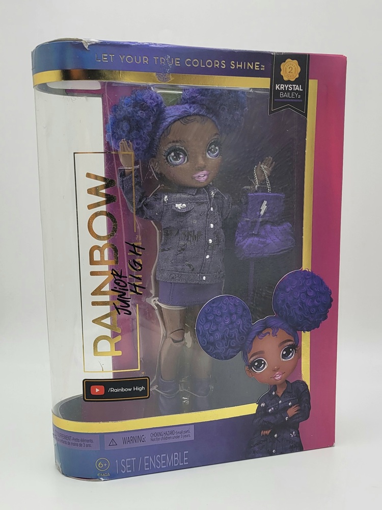 Step into a world of vivid hues with MGA Entertainment's Rainbow High Jr. High Krystal Bailey Posable Fashion Doll! Conquer the style scene and flaunt those expressive looks with Krystal's customizable, flexible poses. Let creativity rain with Krystal Bailey, your vibrant companion for every fashion-forward adventure!