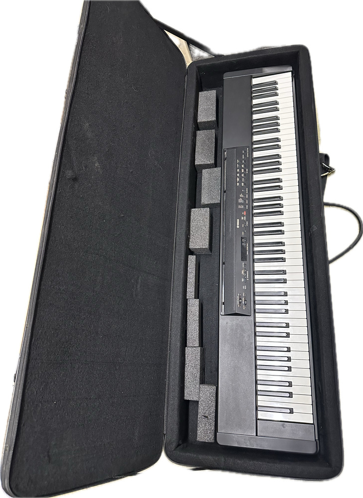 Get the robust Yamaha P-80 digital piano, inclusive of power adapter for continuous music. It features a convenient storage case, a responsive pedal for tonal control, and a sturdy stand for secure positioning. Ideal for both beginners and professional pianists. Enjoy amazing sound and chord versatility.