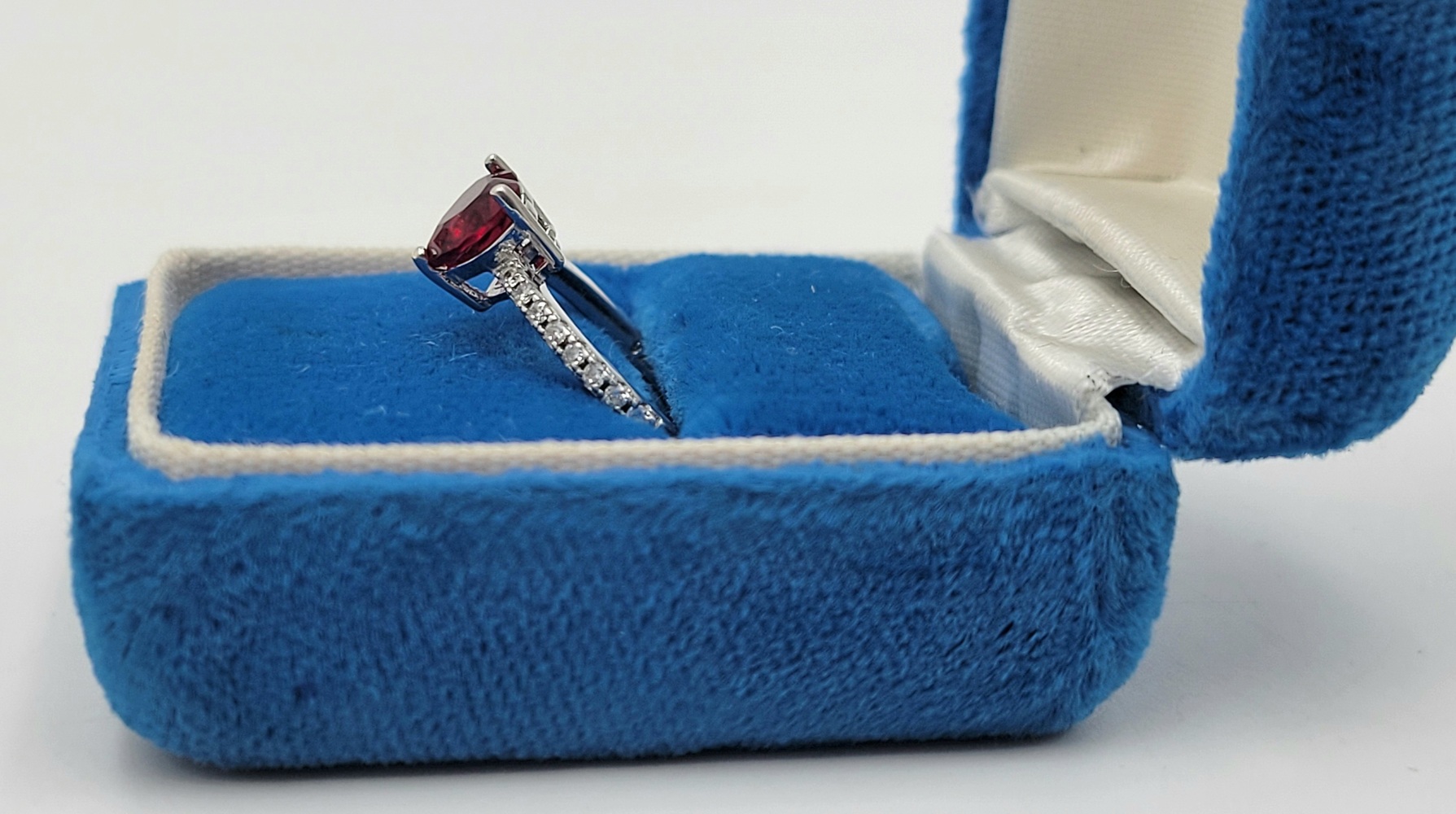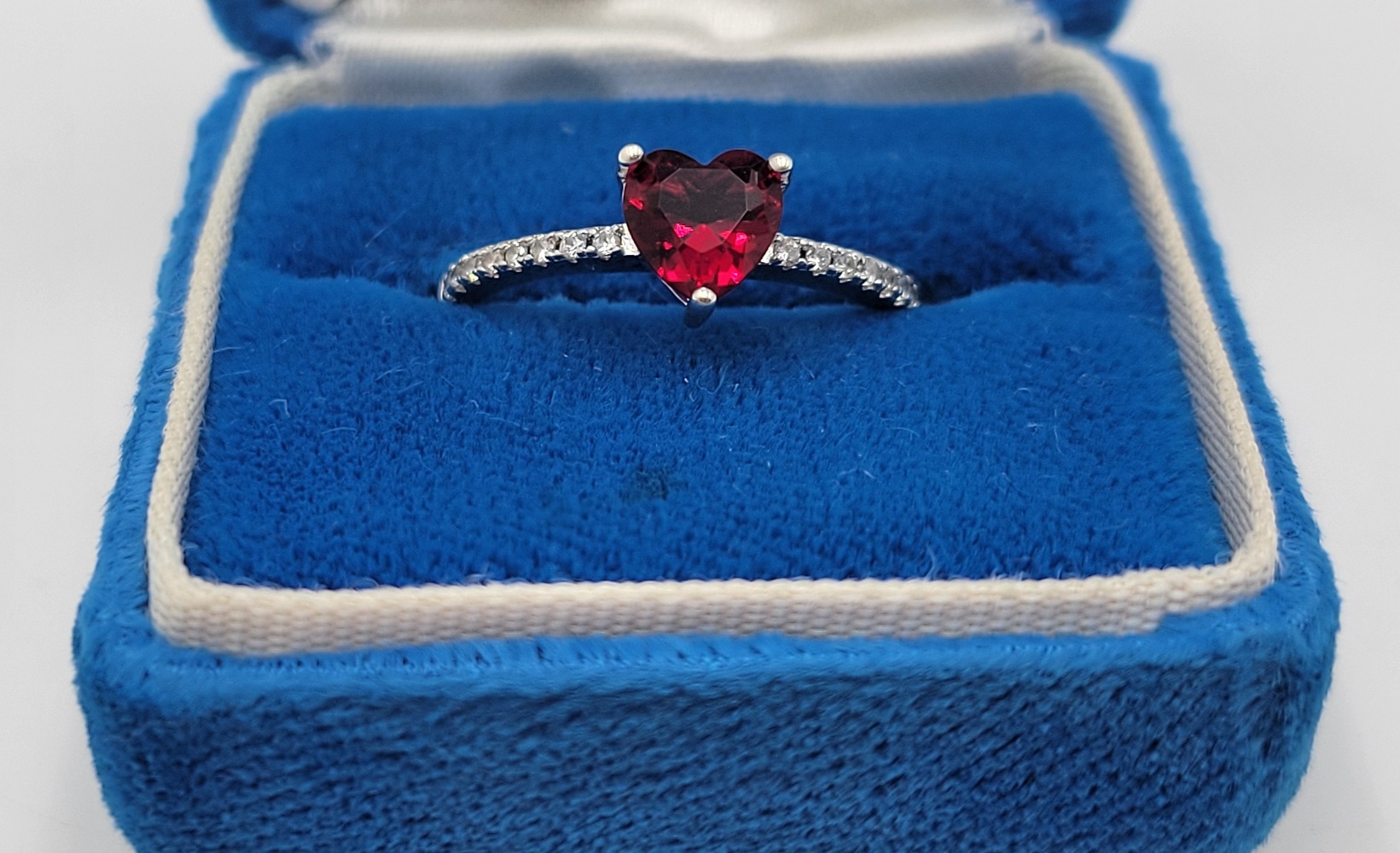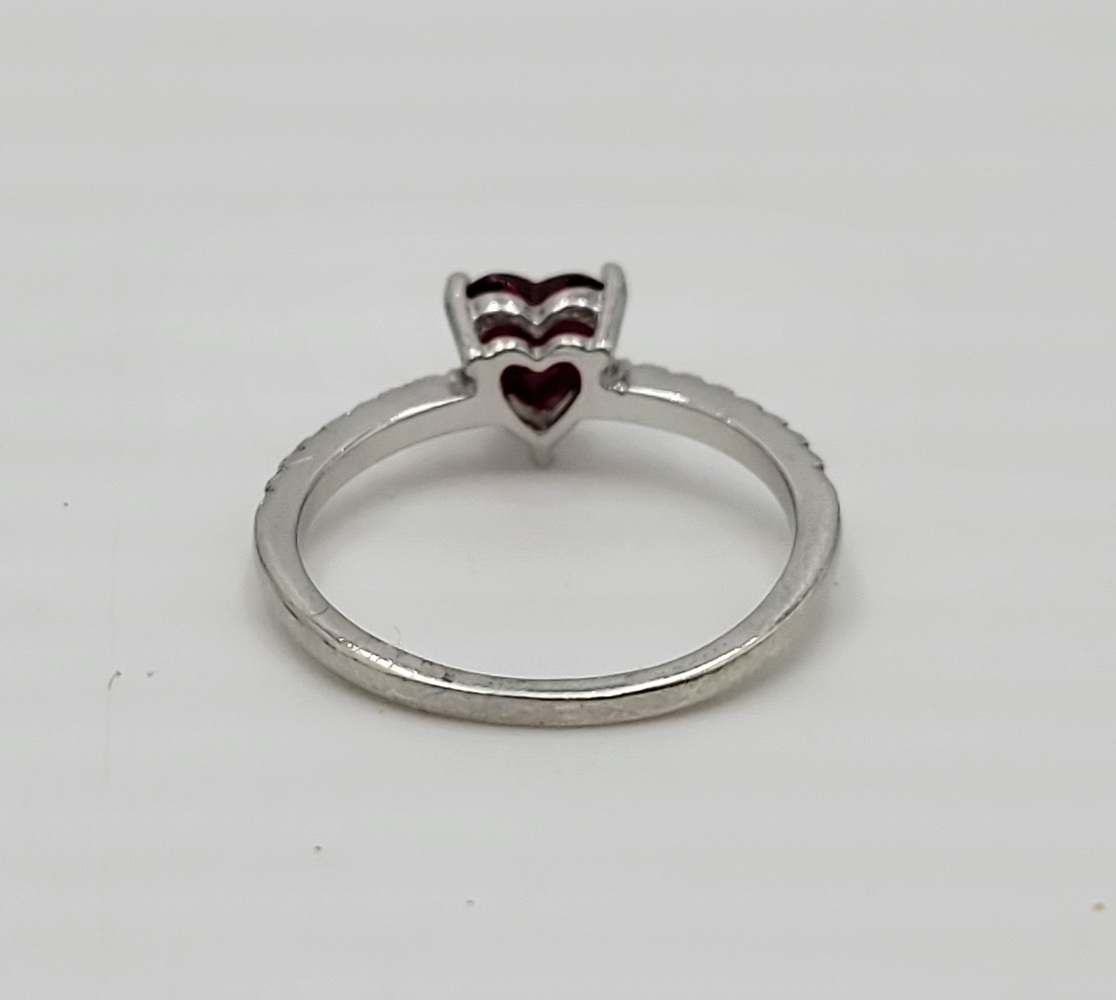 Witness the interplay of shimmering gemstones reflecting infinite affection. Indulge in precious touch to your ensemble. Because in our world, you deserve to shine.Experience love's enchantment with our exclusive, 0.925% Silver Red Heart & Clear Gemstone Ring. Size 6, it gracefully combines passion and elegance.
