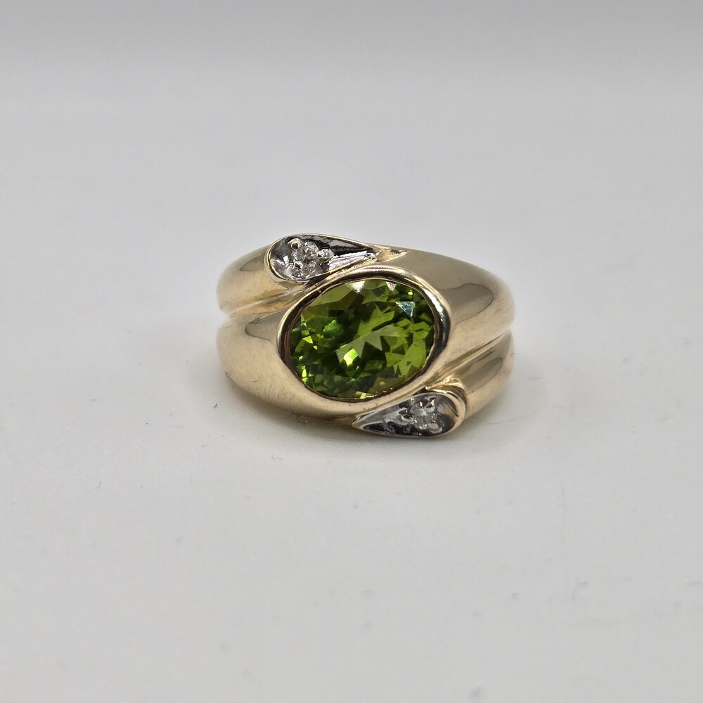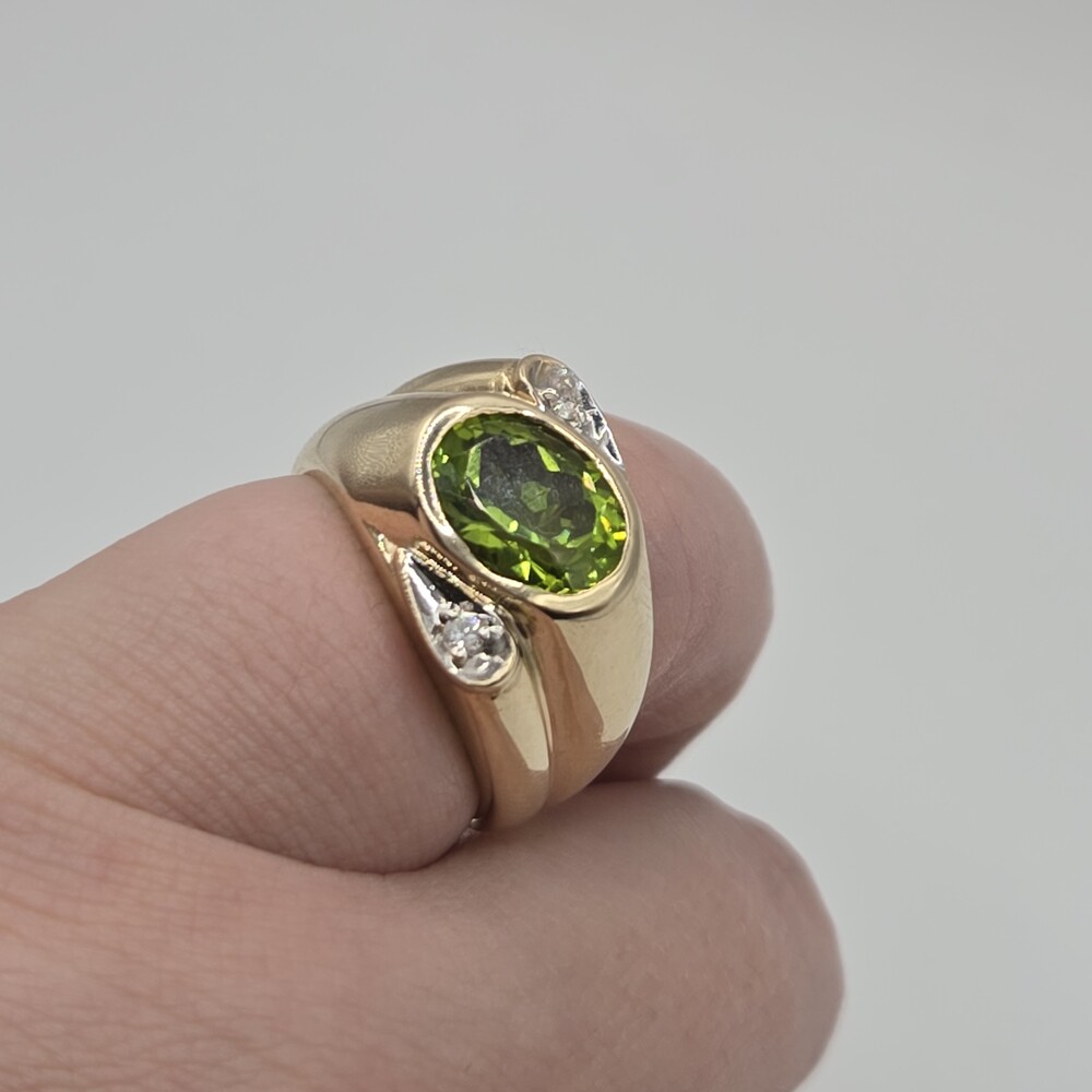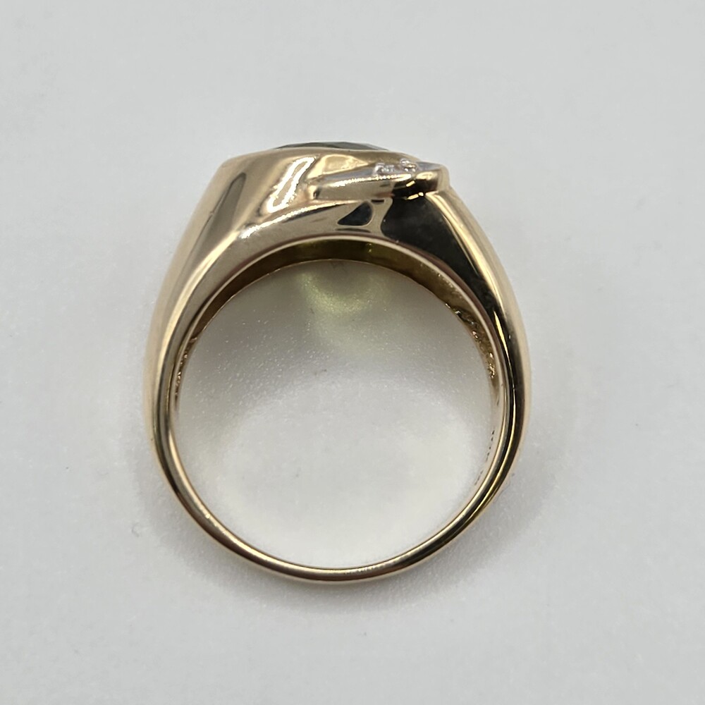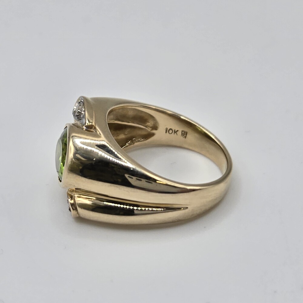 10 Karat Yellow Gold Green Stone Men's Ring with Diamond Accents - Size 8 | Avenue Shop Swap & Sell