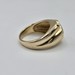 gaze upon this exquisite 10kyg ring, showcasing a large, mesmerizing green stone flanked by two sparkling diamonds