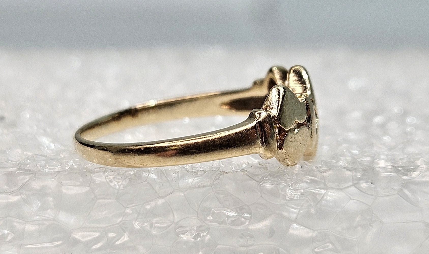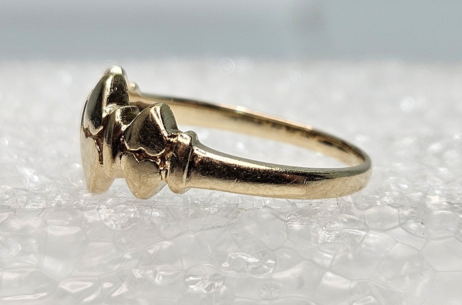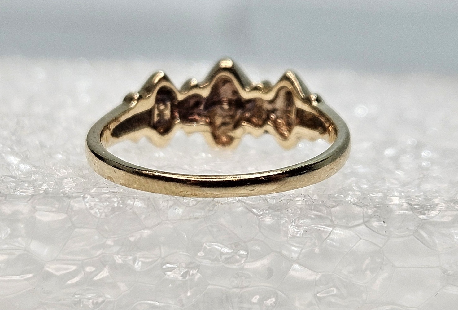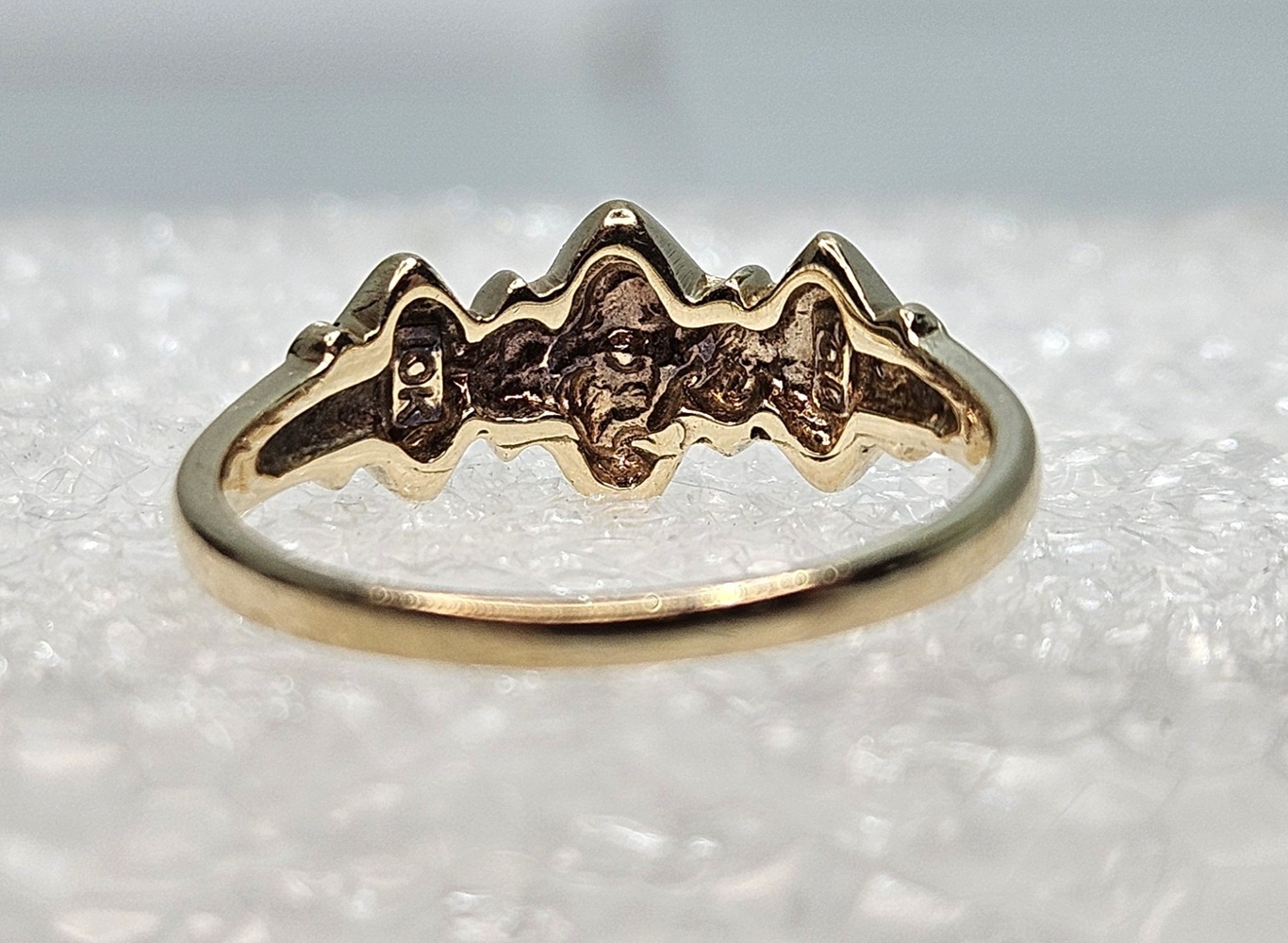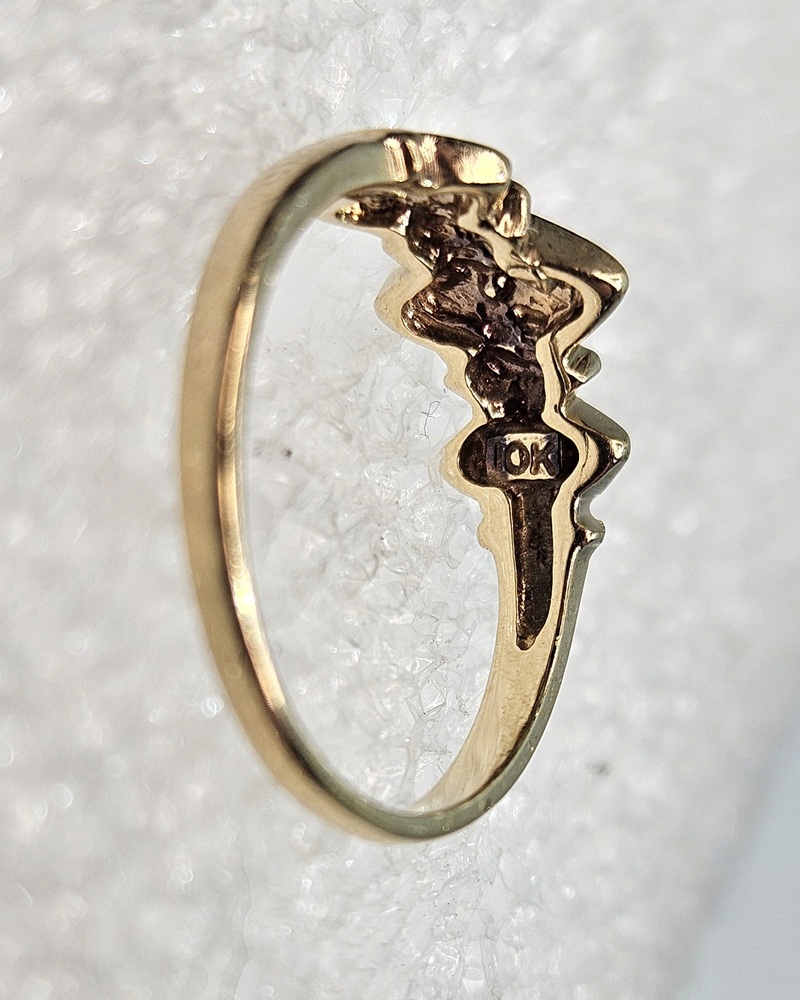 Experience exquisite elegance with this 10K yellow gold ring, delicately designed with six heart-shape accents. Gracefully crafted, encapsulating timeless beauty for all cherished celebrations.