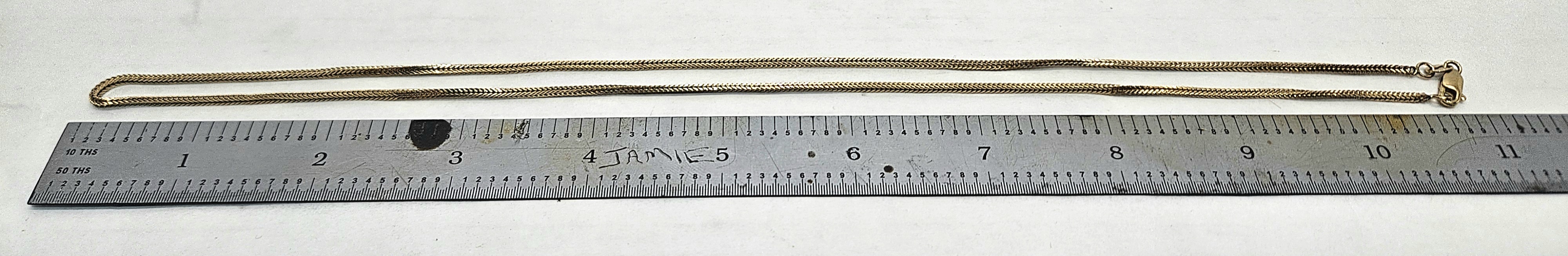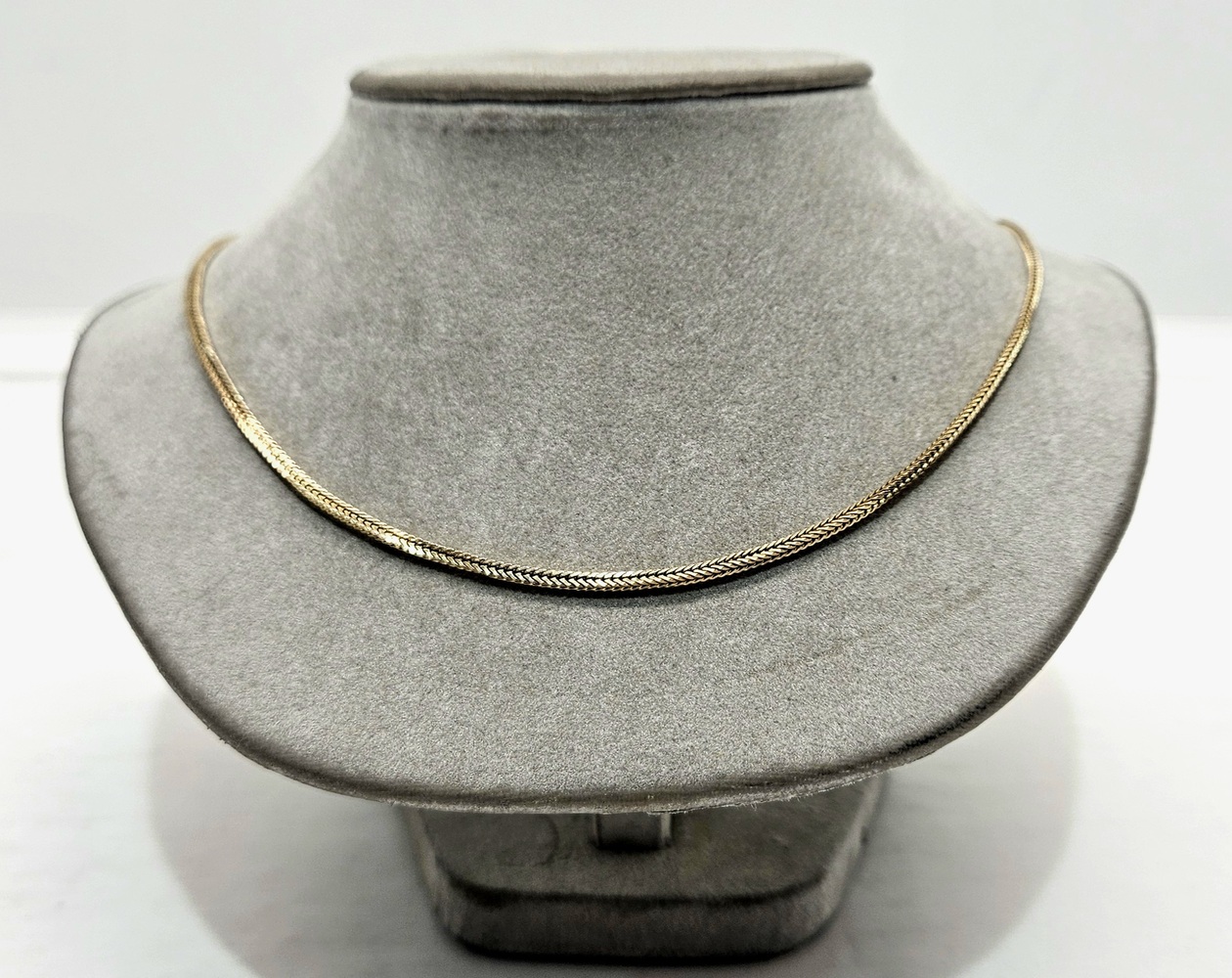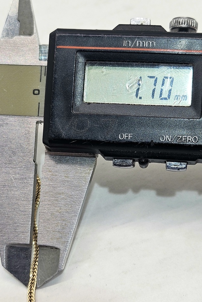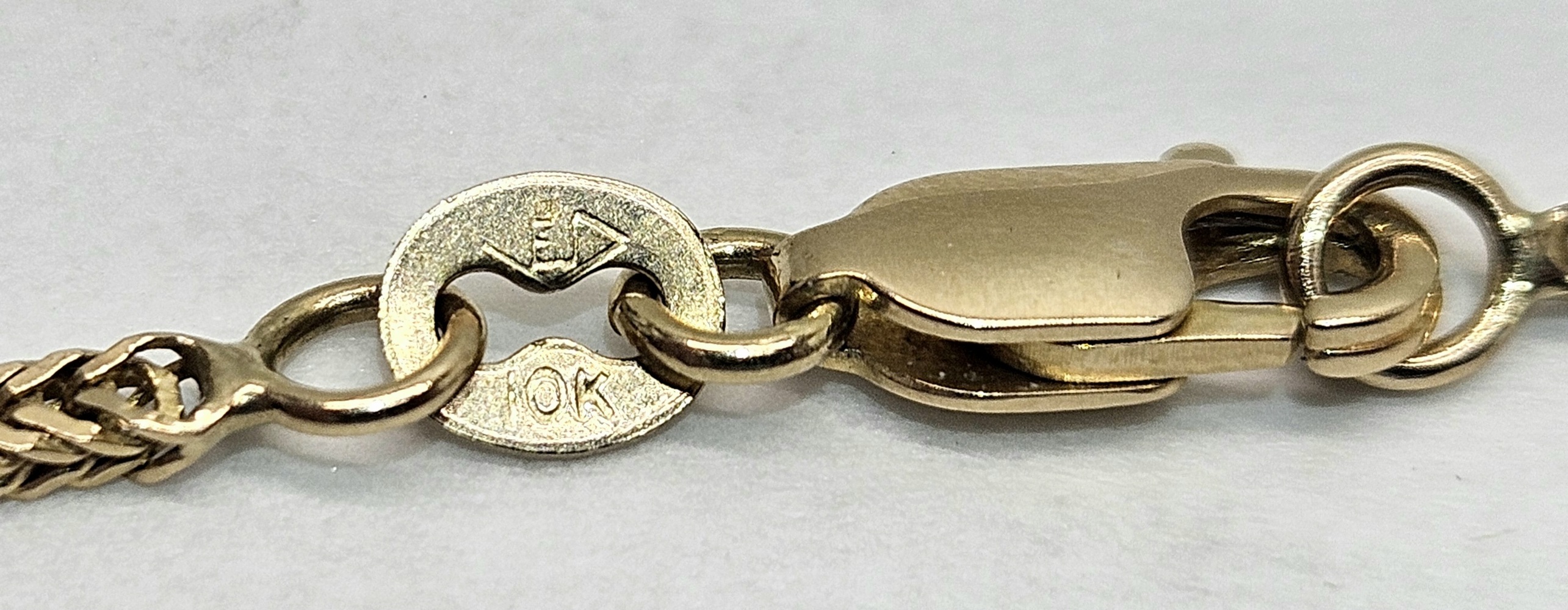 A tasteful 10k yellow gold snake chain, weighing 7.50g, expertly crafted for a fine touch to any outfit. With a 22-inch length and a width of 1.70mm, it radiates modest elegance and sophistication.