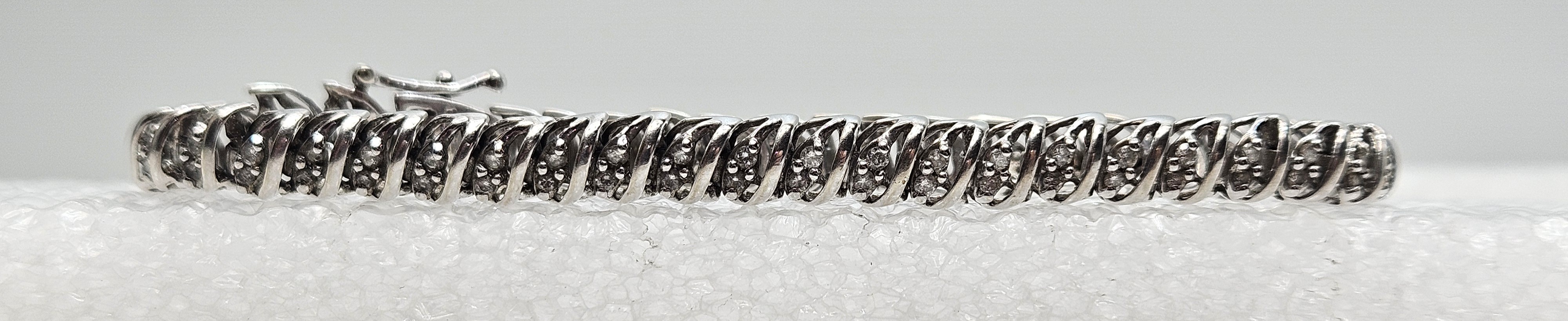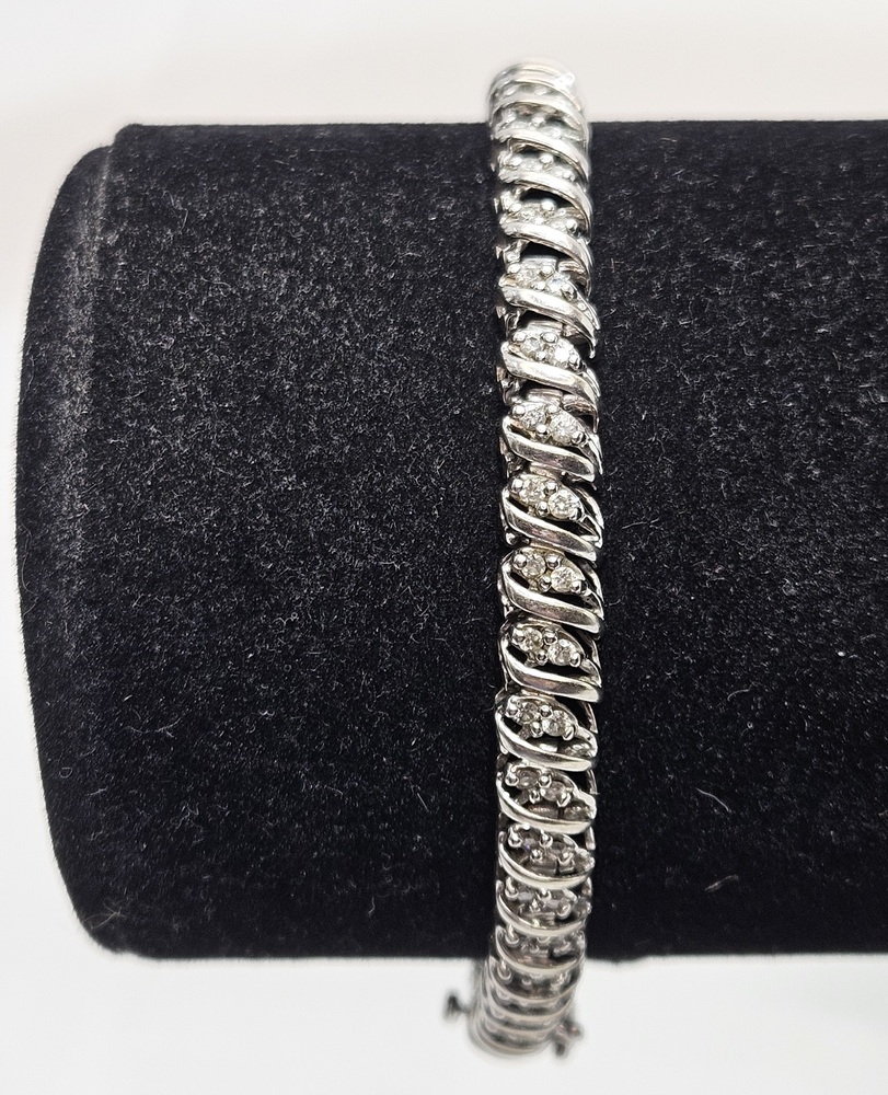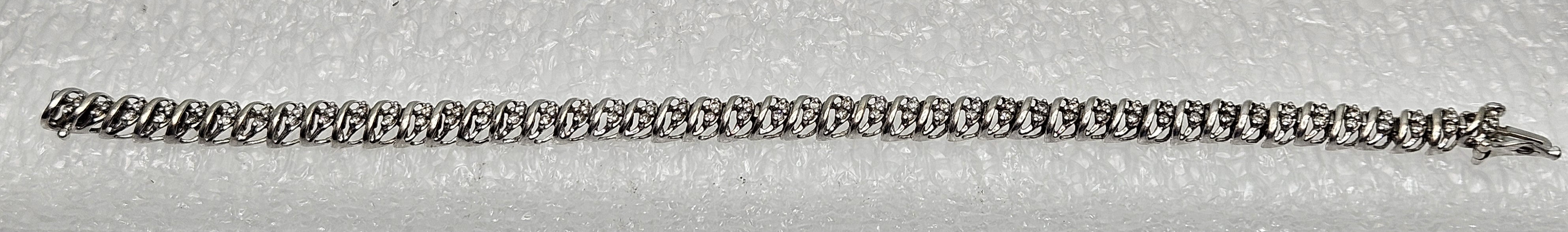 White Gold Bracelet Sz:7 9.89g/10k - 90 Round Diamonds Light Color I2/I3 1.45mm/1.045ct/0.21g