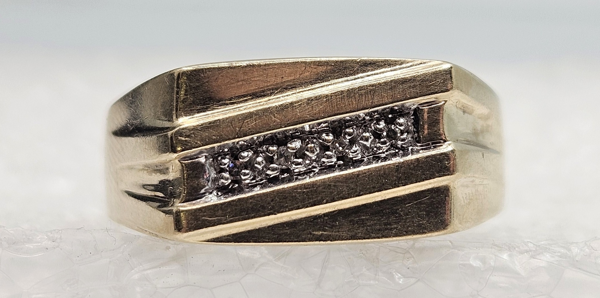 Yellow Gold Band Ring Sz:10.5 3.3g/10k - 4 Round Diamonds Faint Color SI1 0.88mm/0.010ct/0.00g