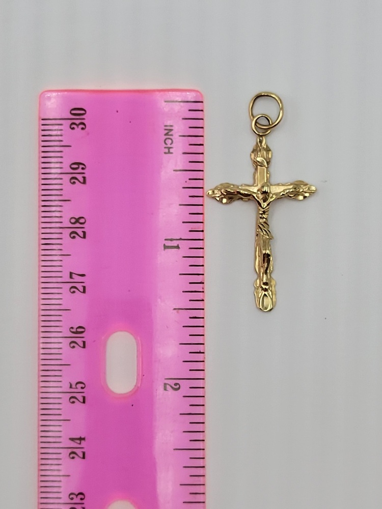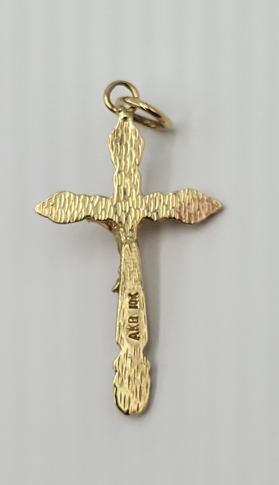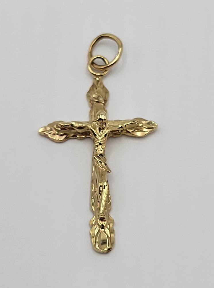 Adorn your faith beautifully with this 10kyg crucifix pendant. It showcases intricate detailing, an enchanting gleam, and is delicately crafted in 10K yellow gold. An embodiment of spirituality and elegance, it is a cherished emblem of divine protection. A timeless investiture of style and devotion.
