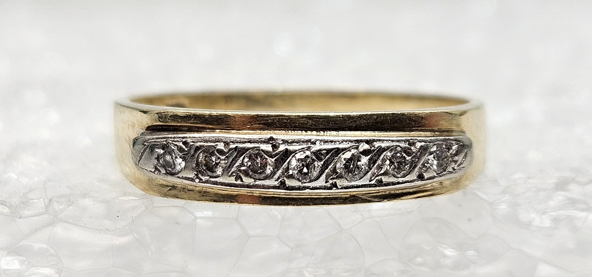 Female Yellow Gold Band Ring Sz:6 1.48g/10kt - 7 Diamond Round Diamonds Near Colorless VVS1/VVS2 1.5