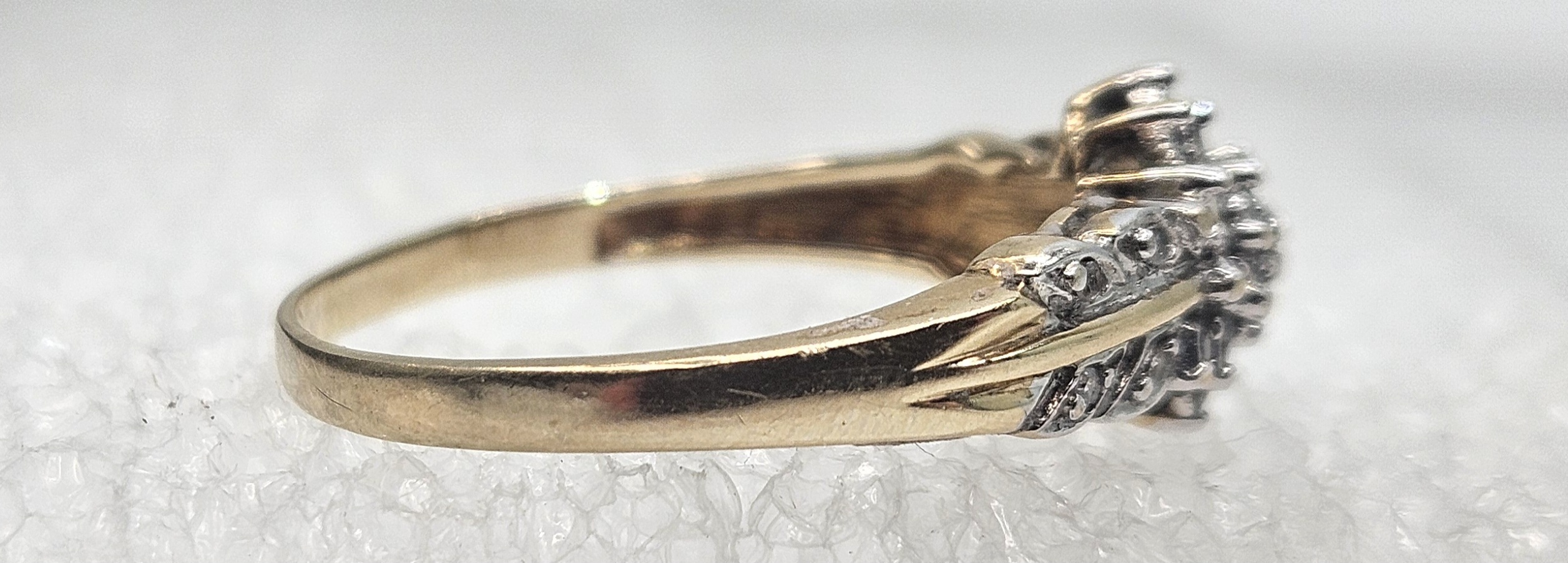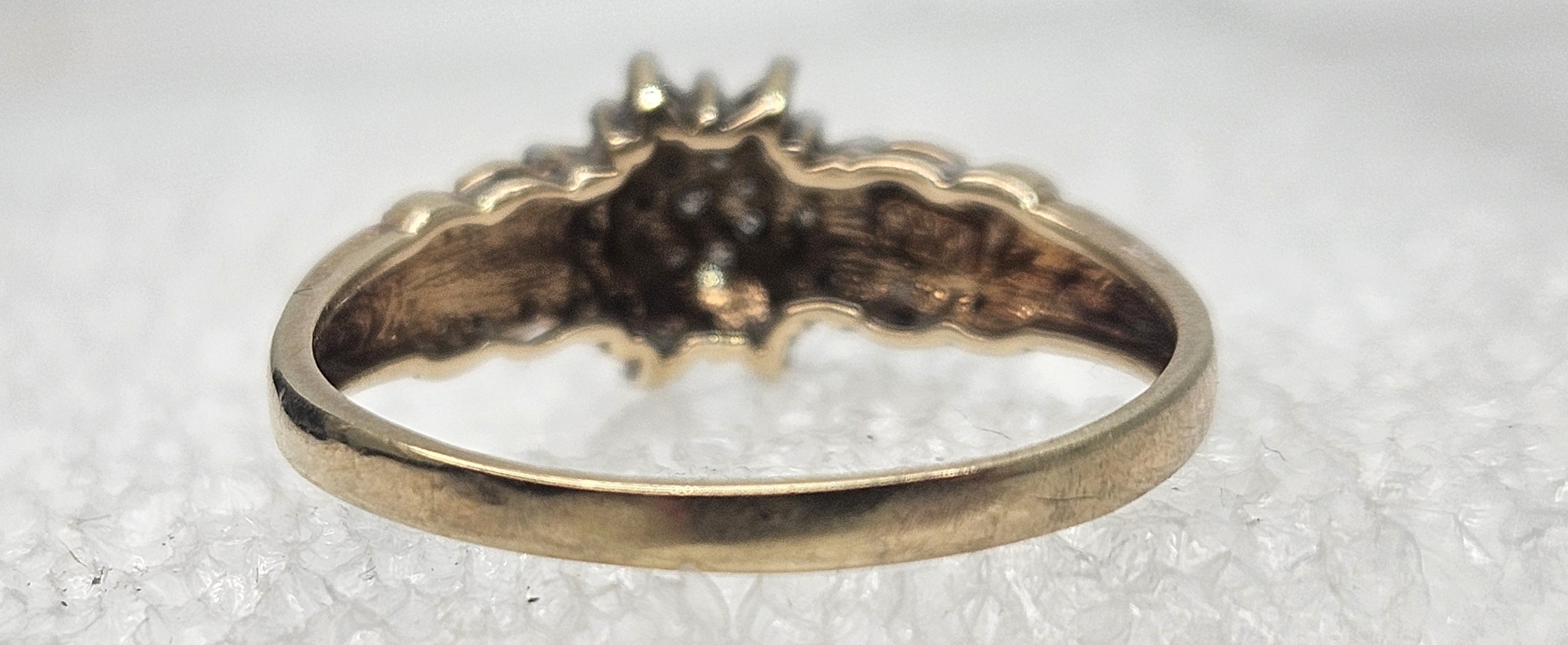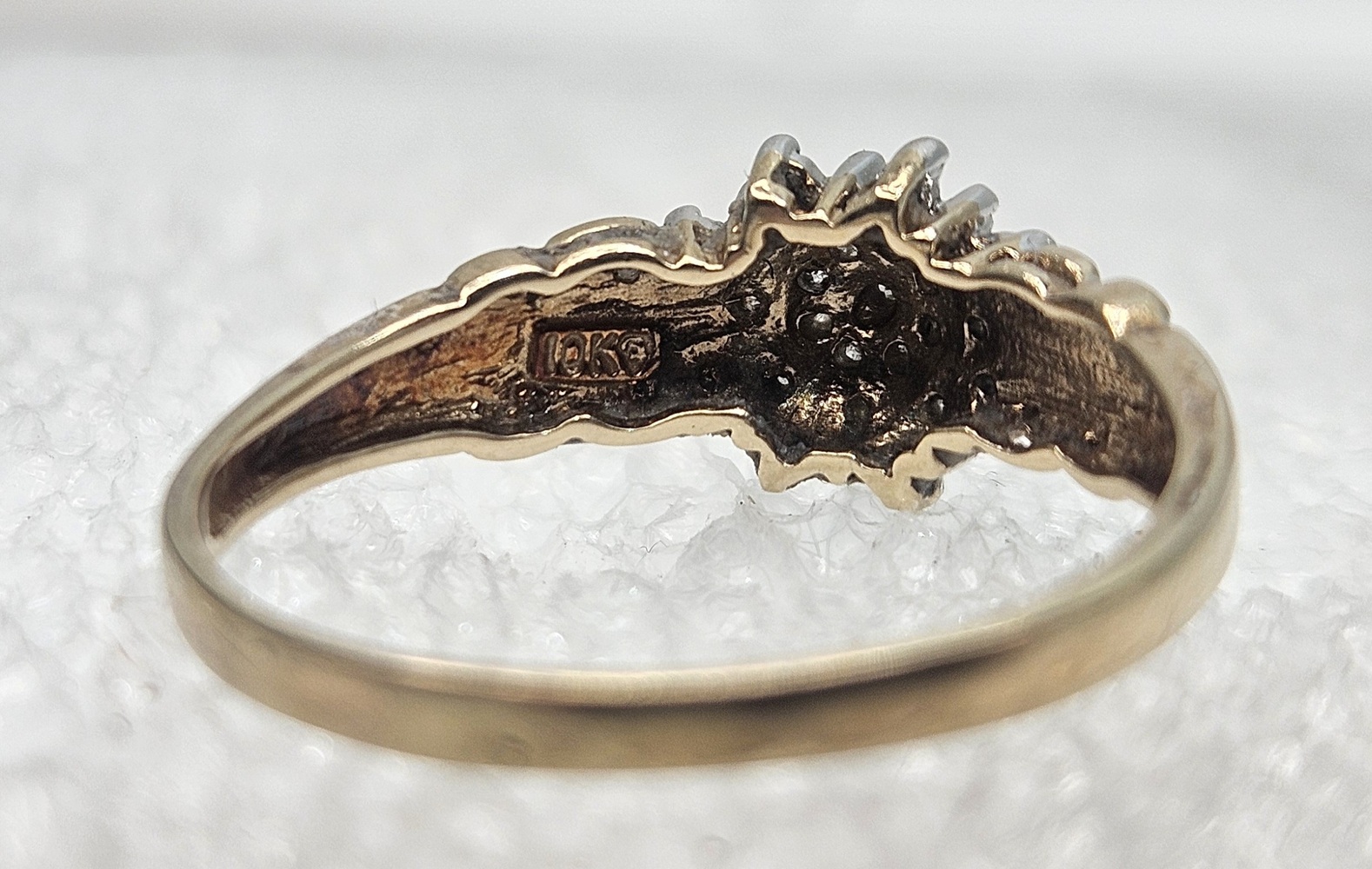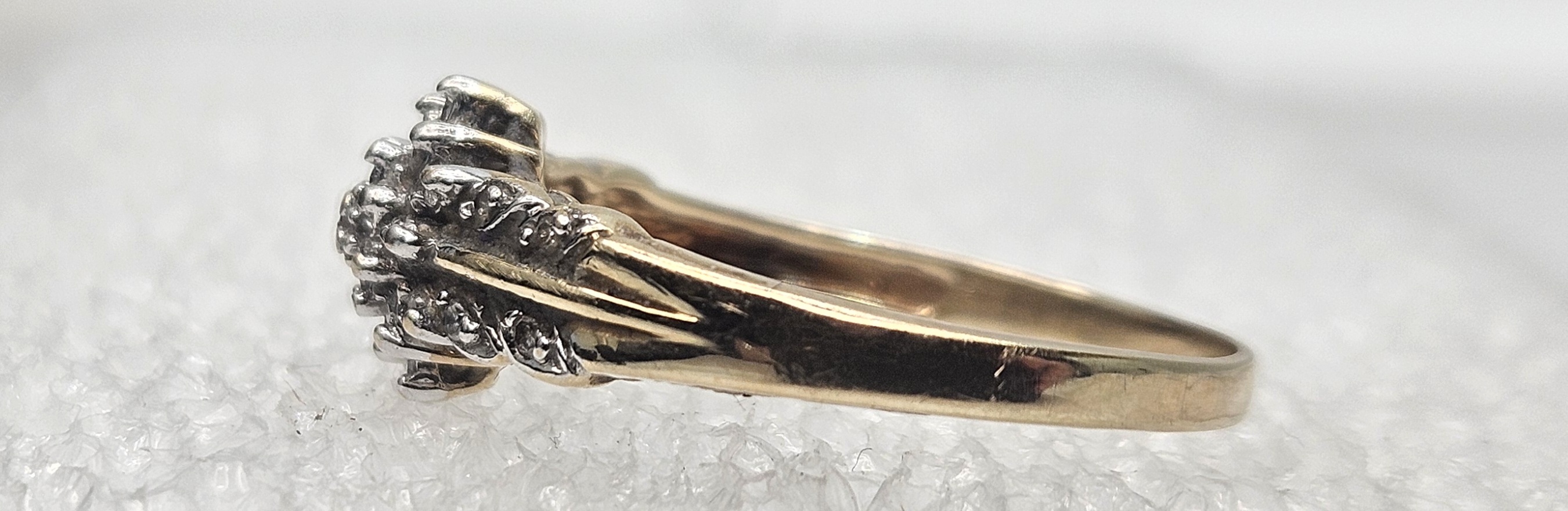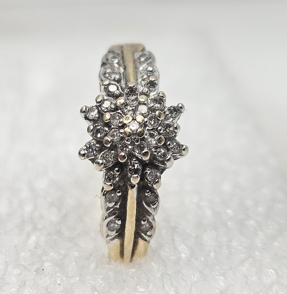 Yellow Gold Cluster Ring Sz:8.75 2.28g/10k - 32 Round Diamonds Very Light Color I2/I3 0.95mm/0.105ct