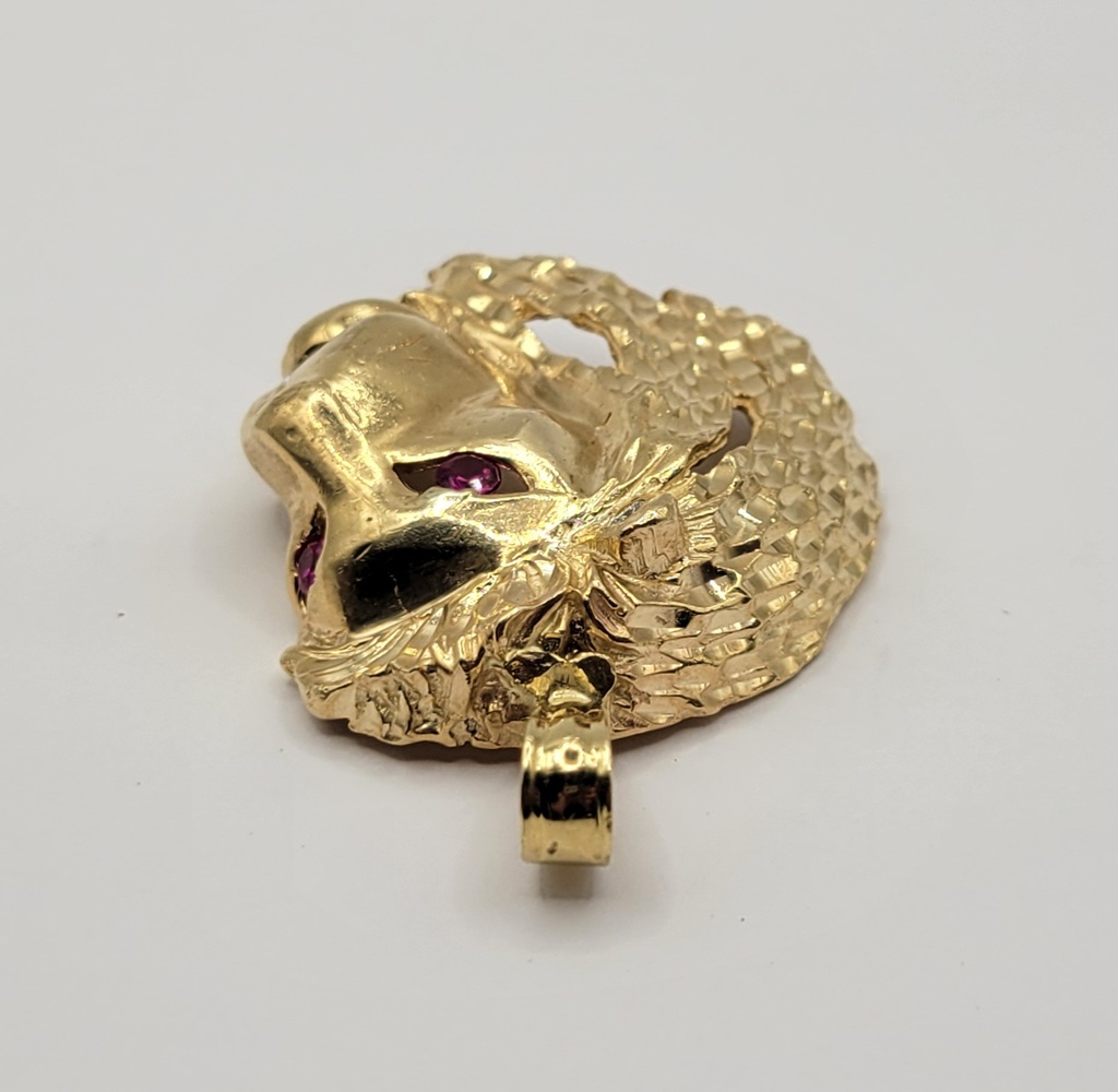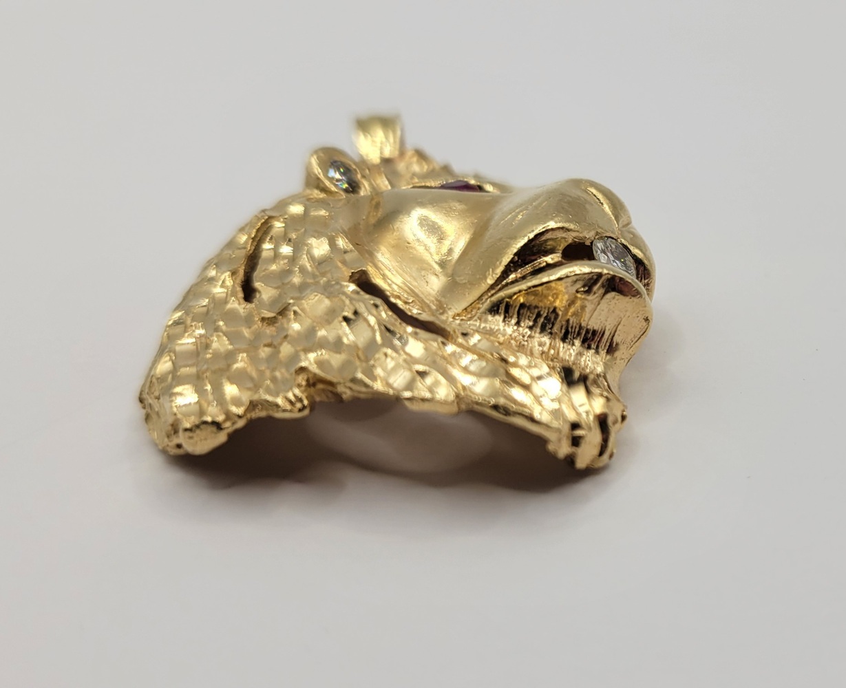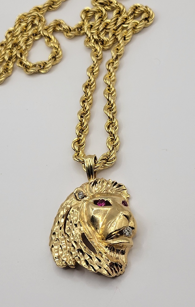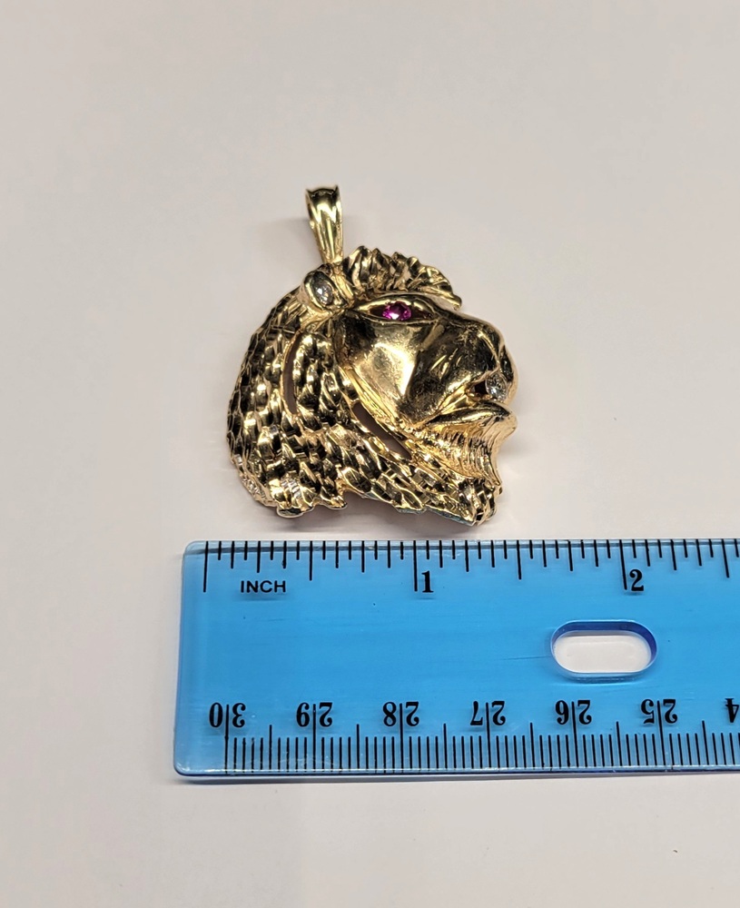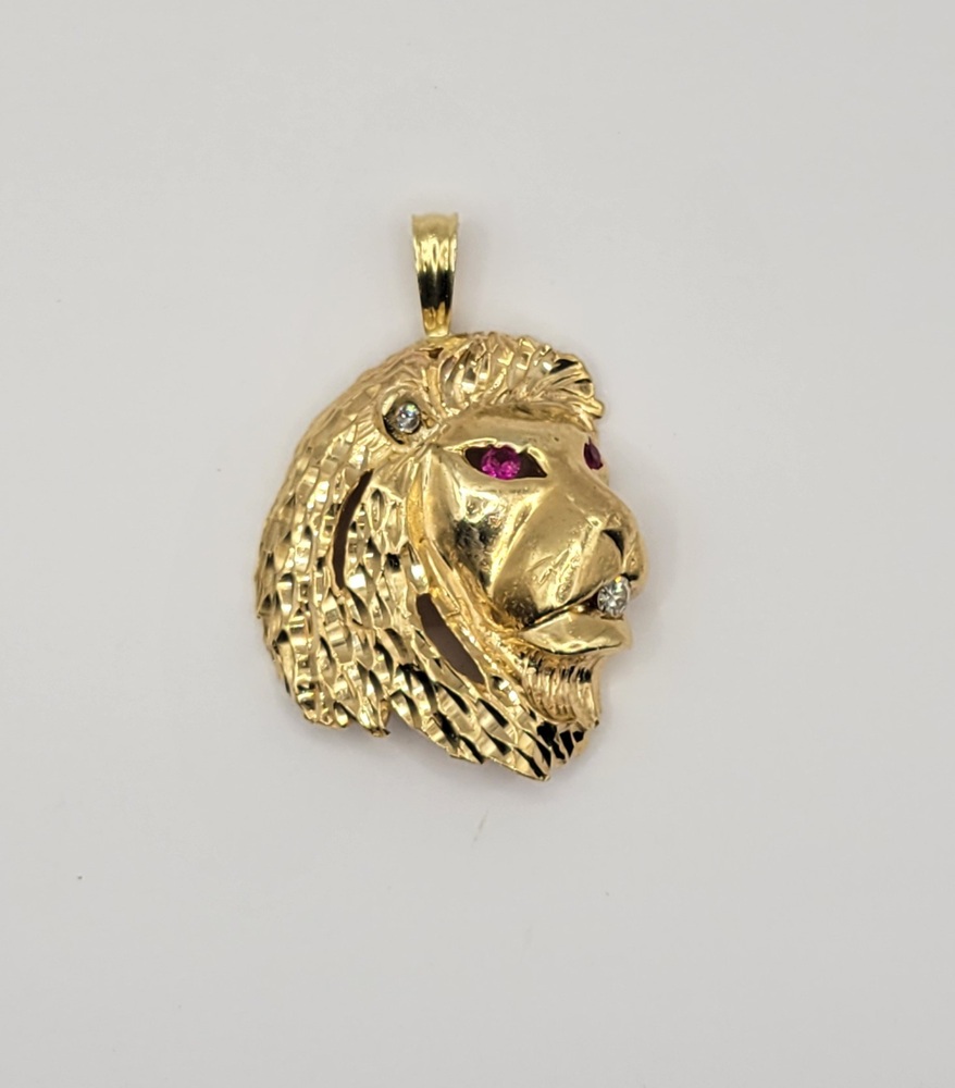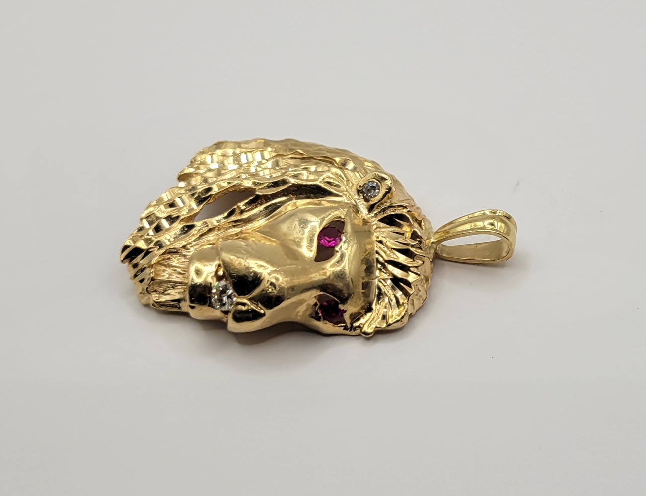 Unleash your inner strength with this awe-inspiring 10kyg Lionhead Pendant. Accentuated by a majestic array of 0.26TCW diamonds, it is not simply a piece of jewellery, but a potent emblem of power. Own your pride coveted in this exquisite gemstone-studded statement piece.