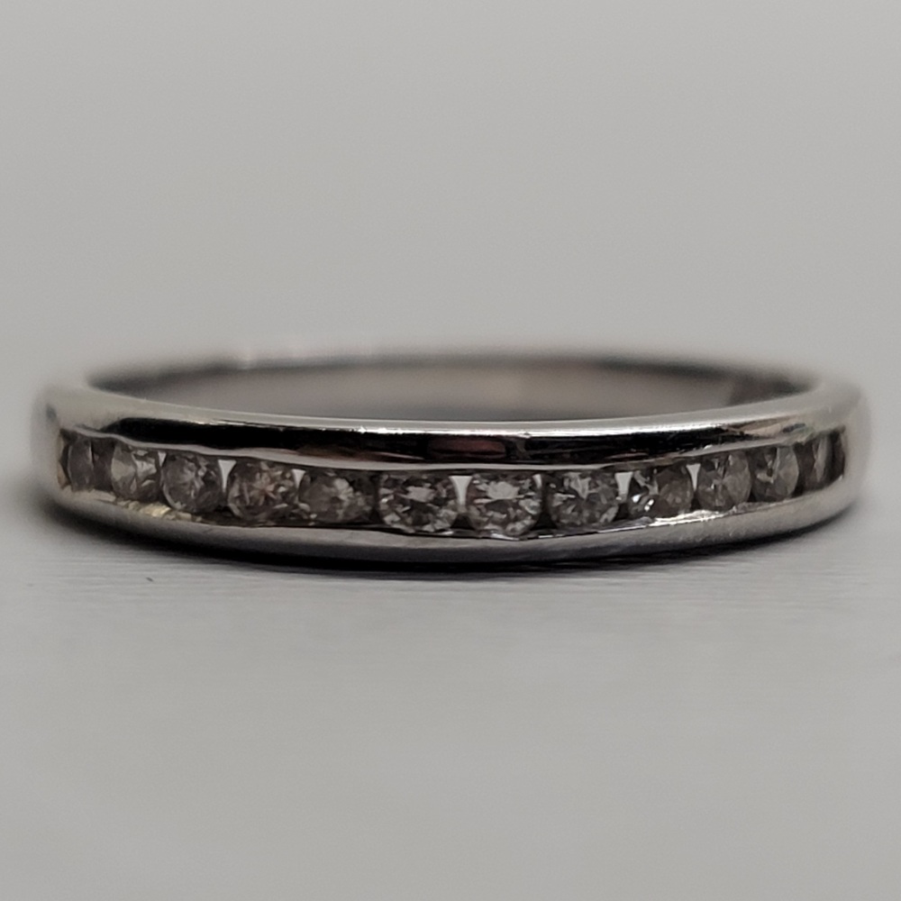 White Gold Band Ring Sz:7 2.06g/14k - 12 Round Diamonds Faint Color I1 1.64mm/0.20ct/0.04g