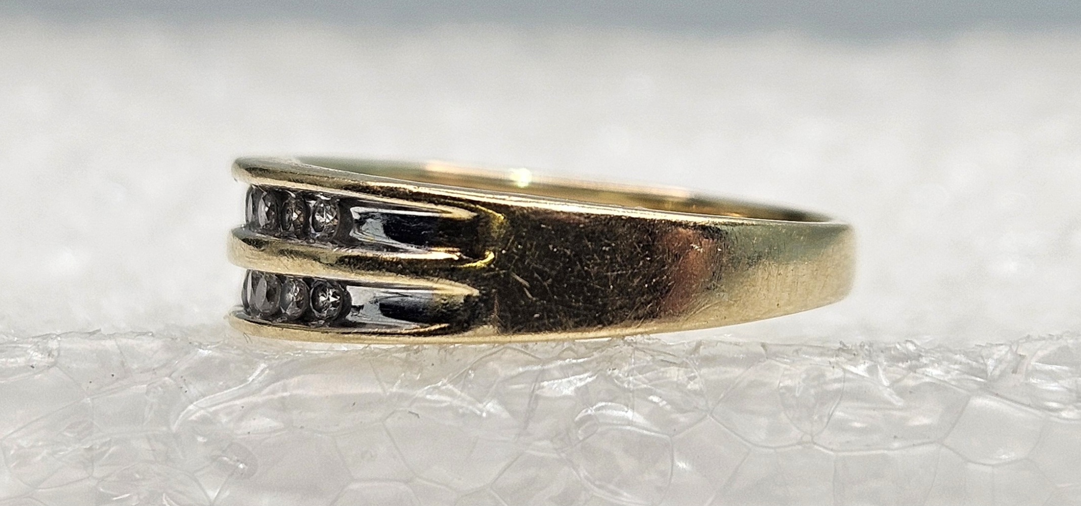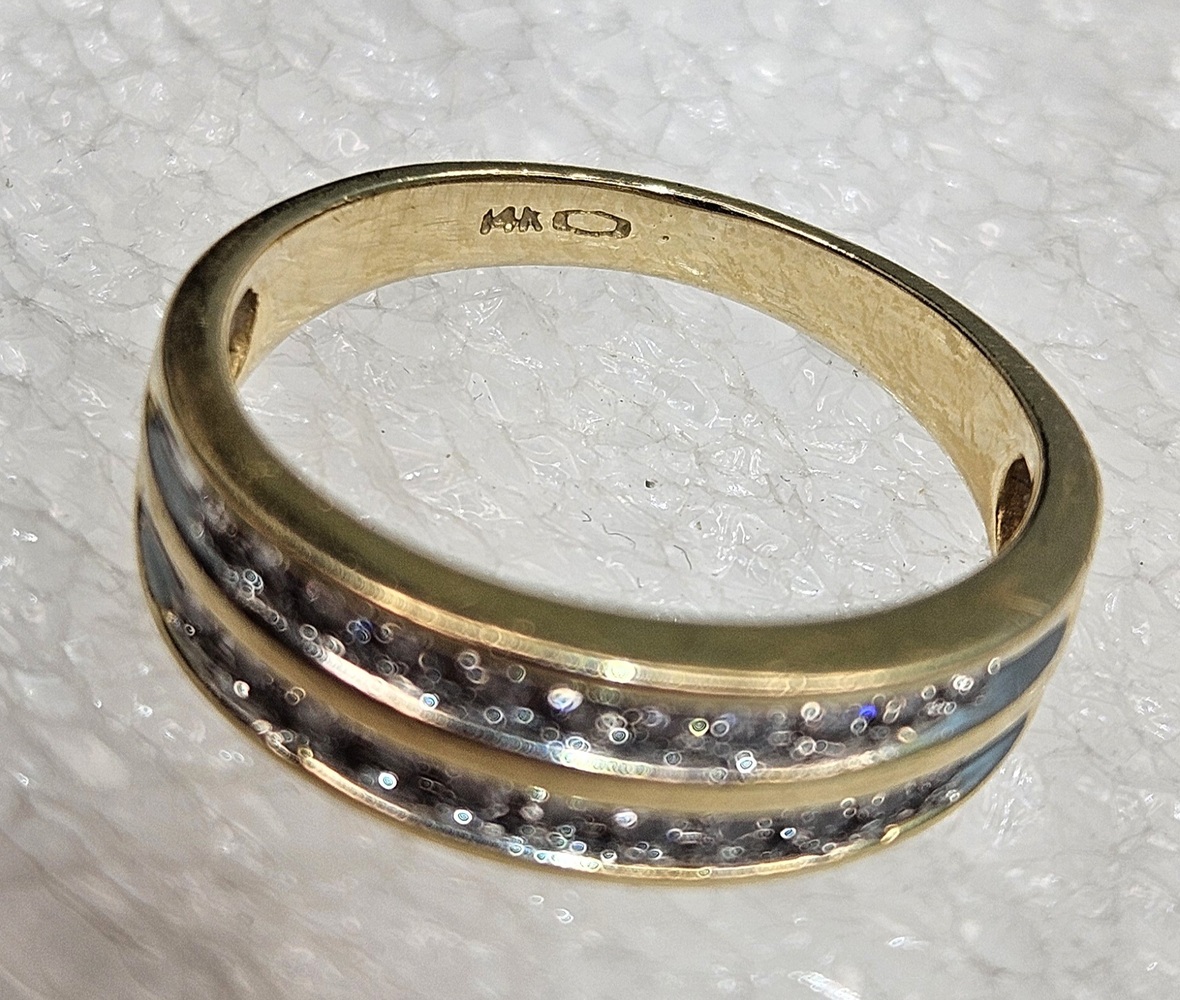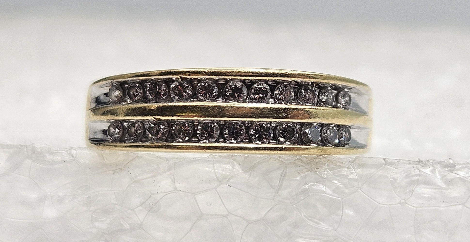 This is an exquisite 14k Yellow Gold Band, tastefully embellished with 22 scintillating Diamonds, flawlessly channel-set to perfection. This luxurious piece is an embodiment of classic elegance and timeless charm.