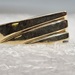 Unveil your enigmatic sophistication with this 14k yellow gold ring. Flaunting an alluring black line diagonally slicing through its center, this piece is a compelling dance between classic and contemporary design. A sly wink of rebellion, delicately wrapped around your finger.