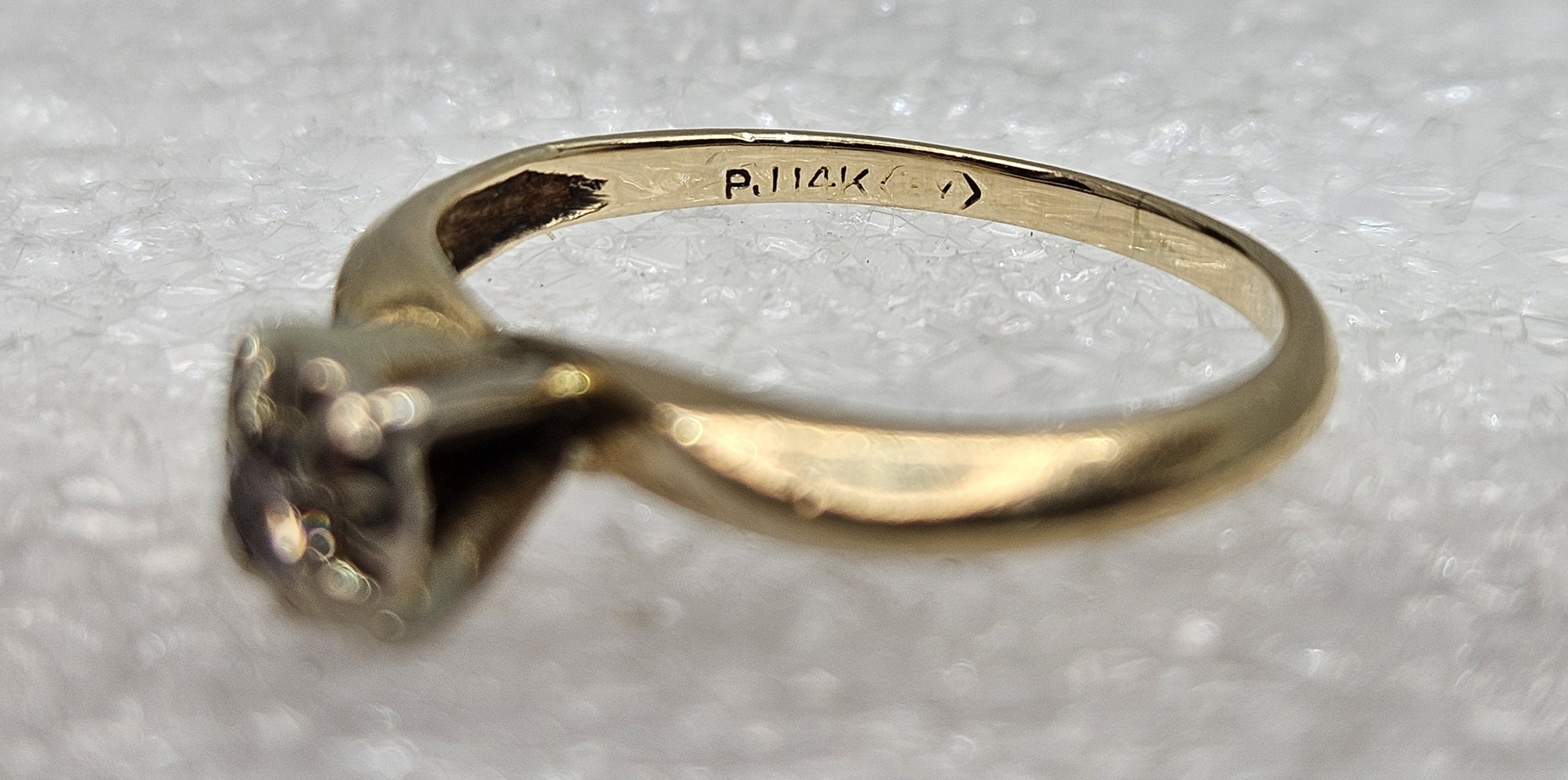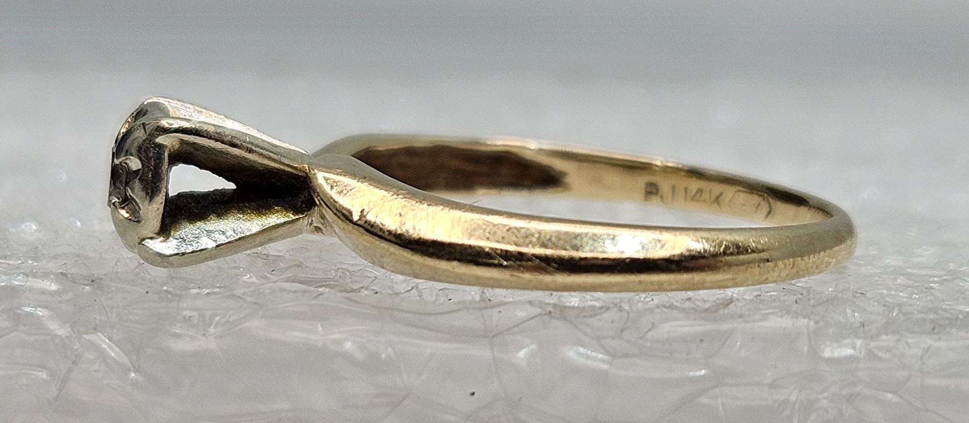 Female Yellow Gold Engagement Ring Sz:4.25 2g/14kt - 1 Diamond Round Diamond Very Light Color SI1 1.