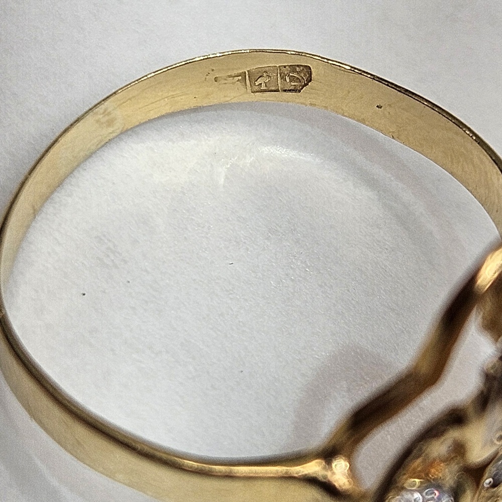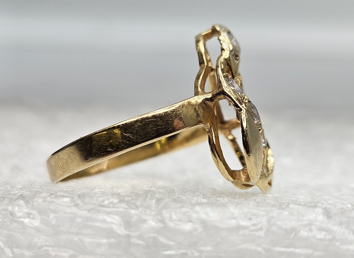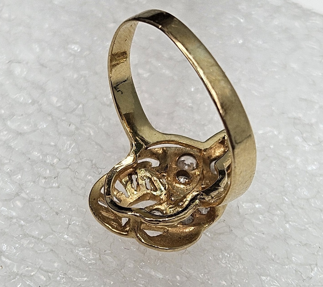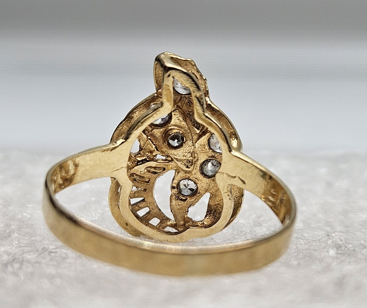 This exquisite 14k yellow gold ring, designed as an elegant snake, is adorned with six entrenched round clear stones. It is a radiant blend of luxury and artistry, crafted meticulously for sophistication and charm.
