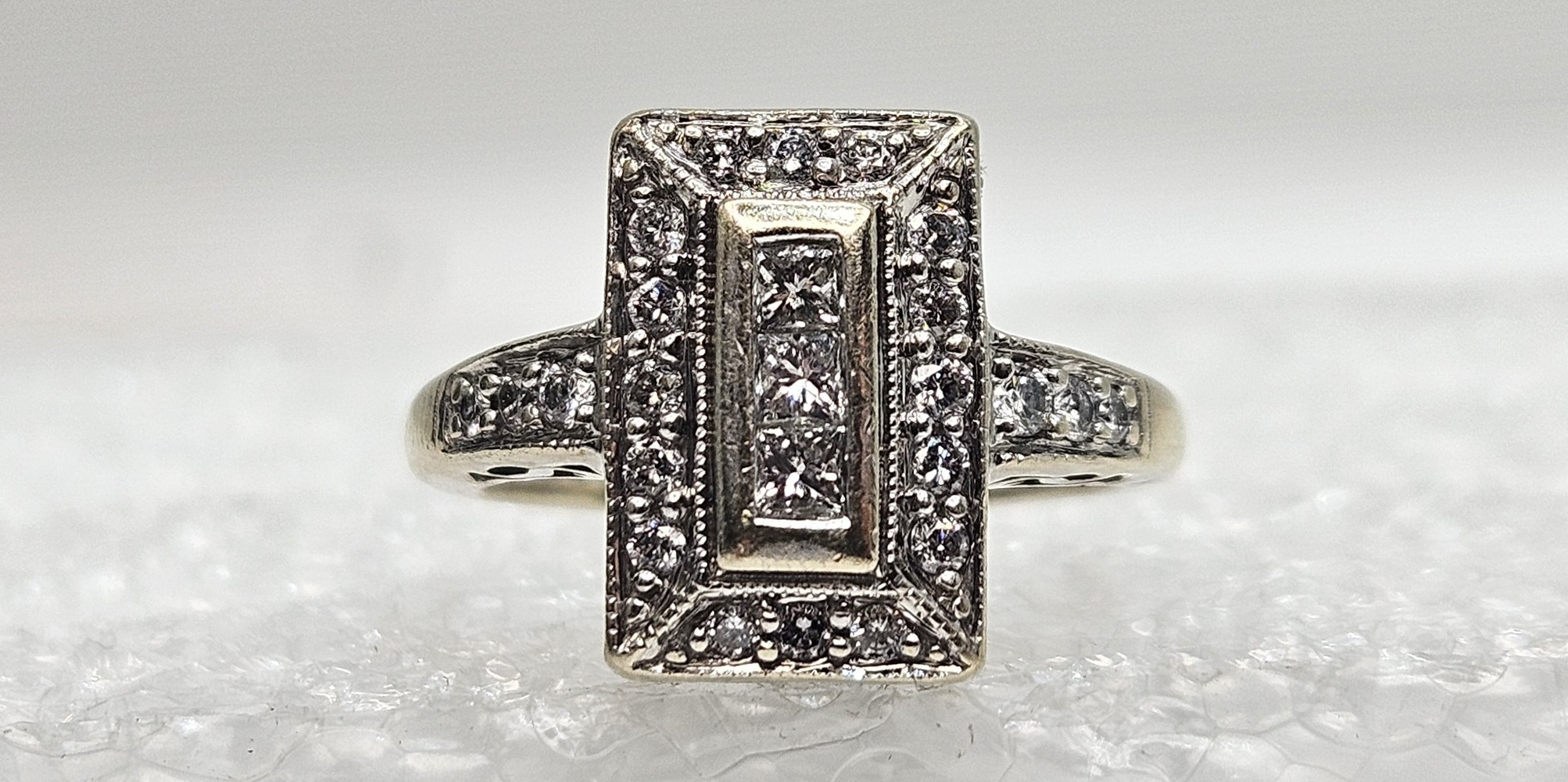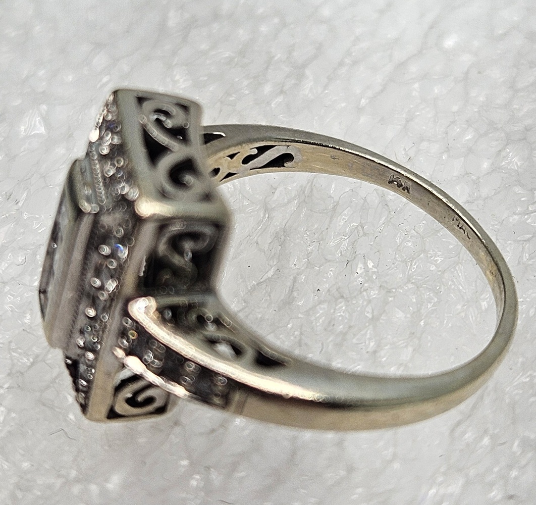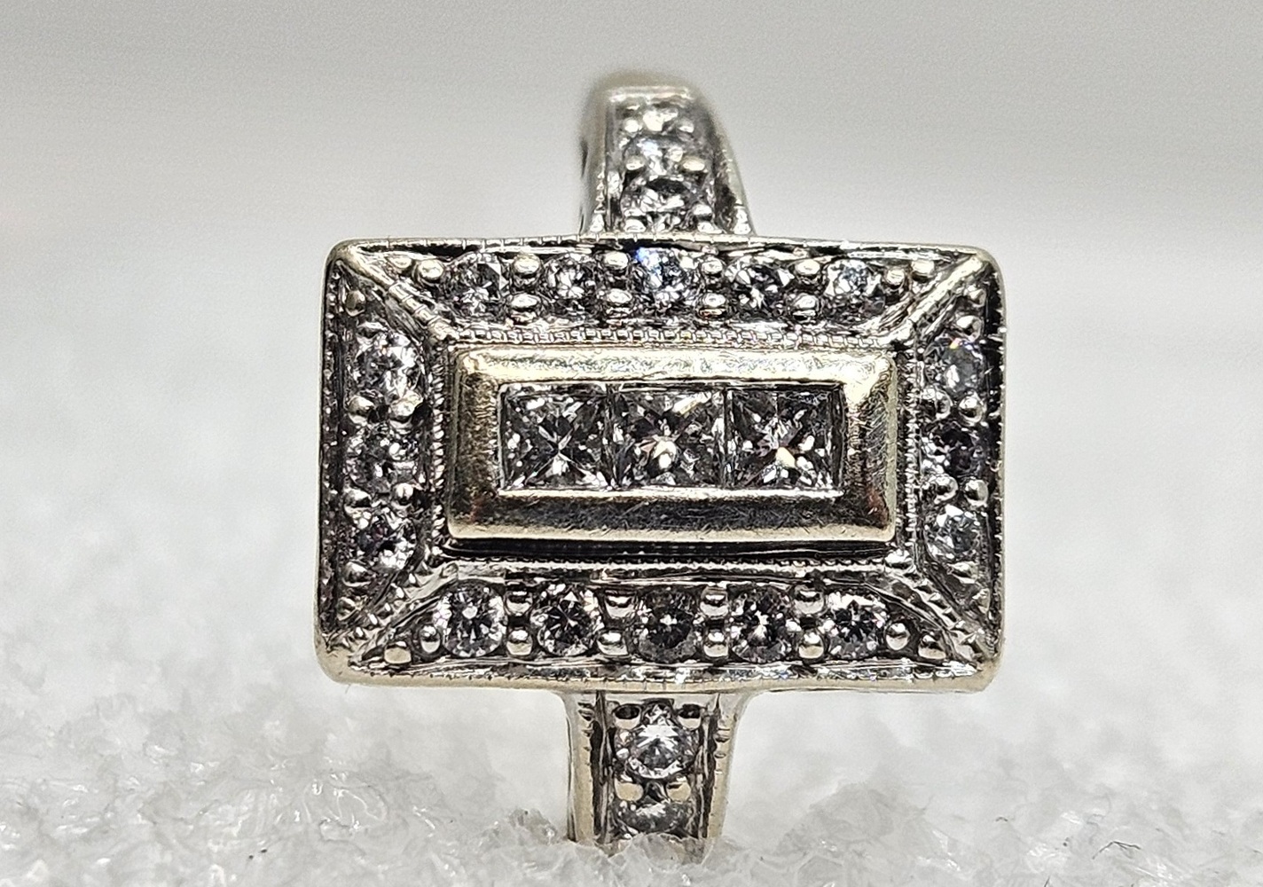 Elegant 14k white gold rectangular cluster ring showcases a striking arrangement of sparkling diamonds, offering a stunning blend of style and sophistication. Perfect for special occasions.