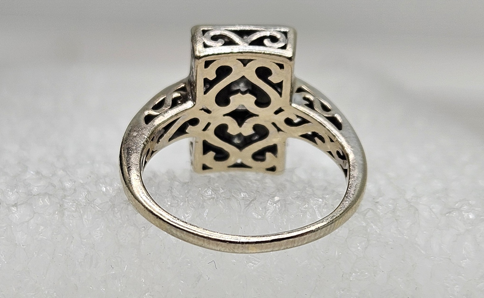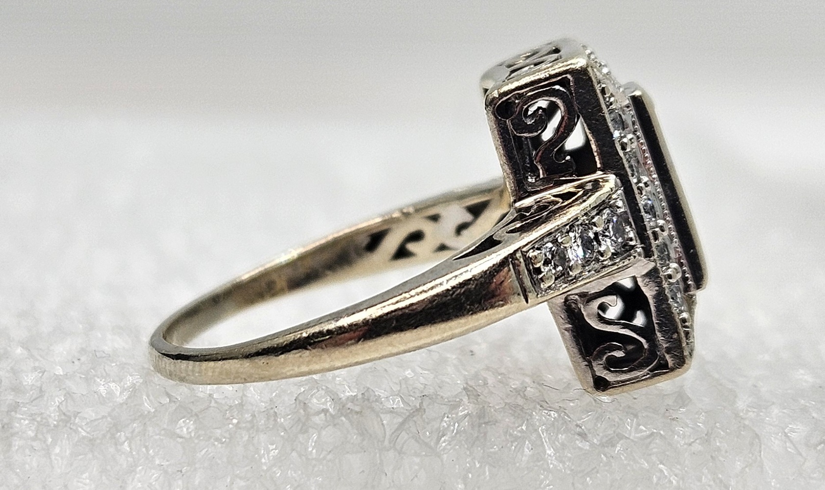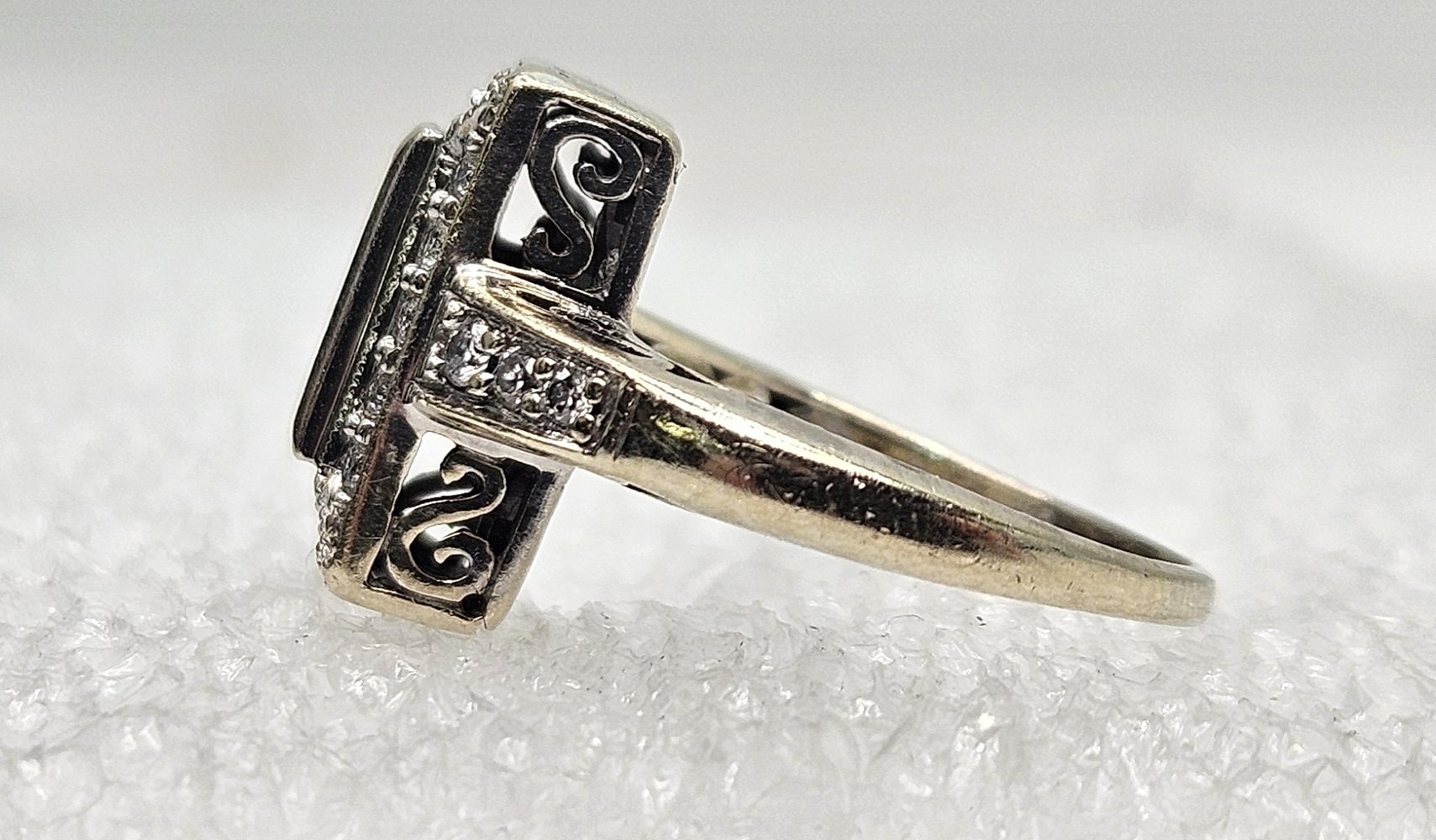 Elegant 14k white gold rectangular cluster ring showcases a striking arrangement of sparkling diamonds, offering a stunning blend of style and sophistication. Perfect for special occasions.