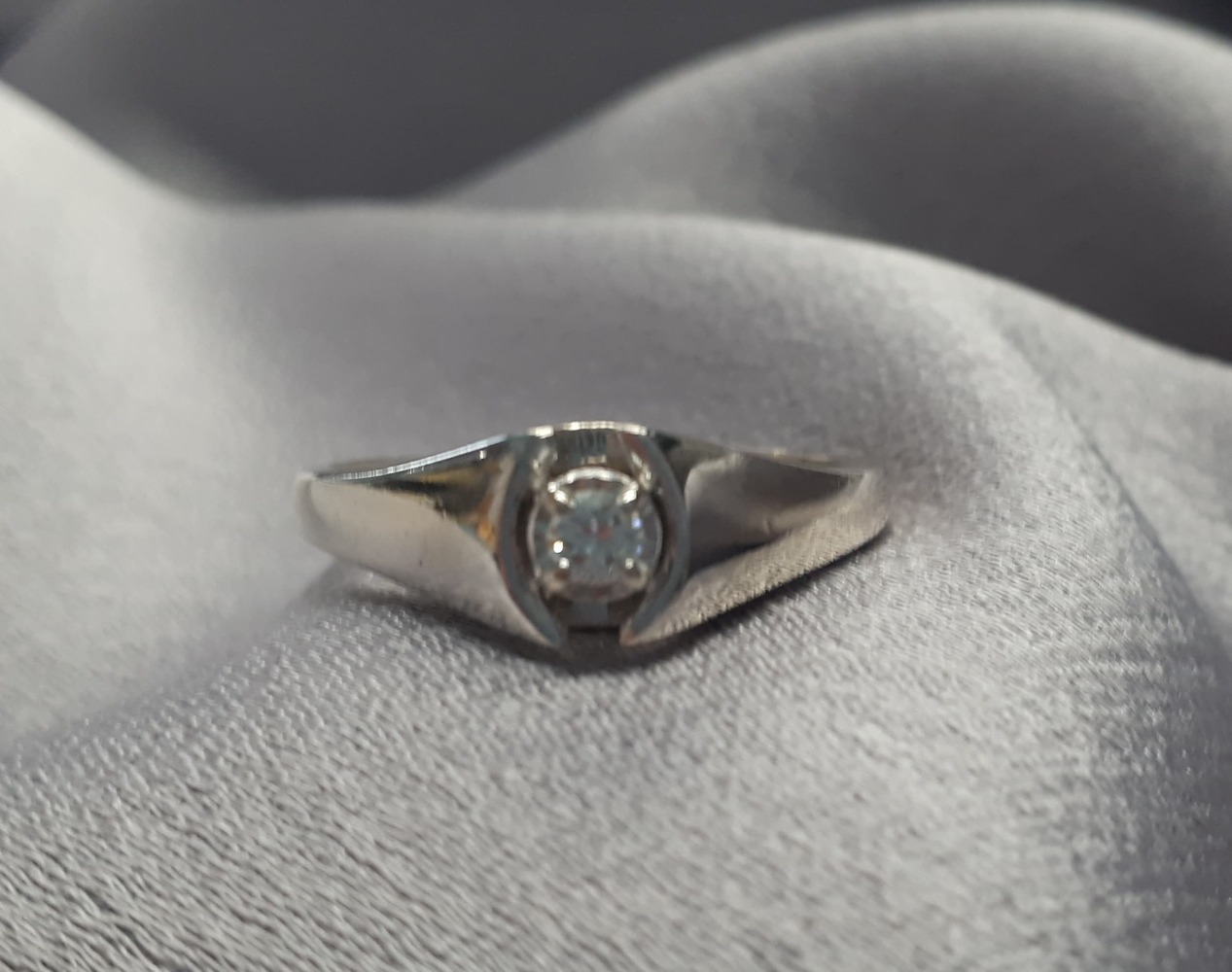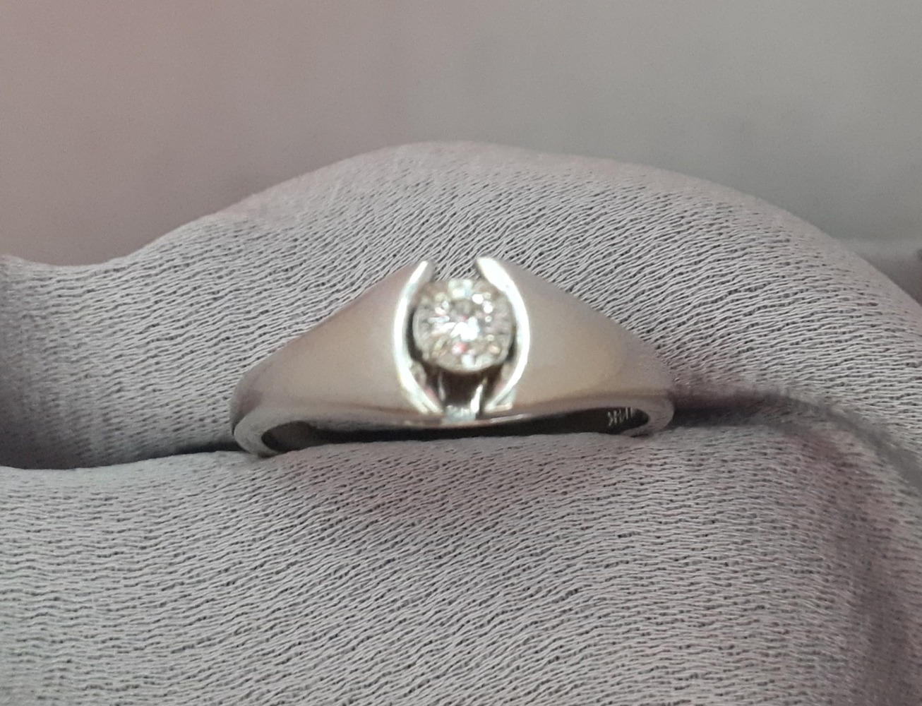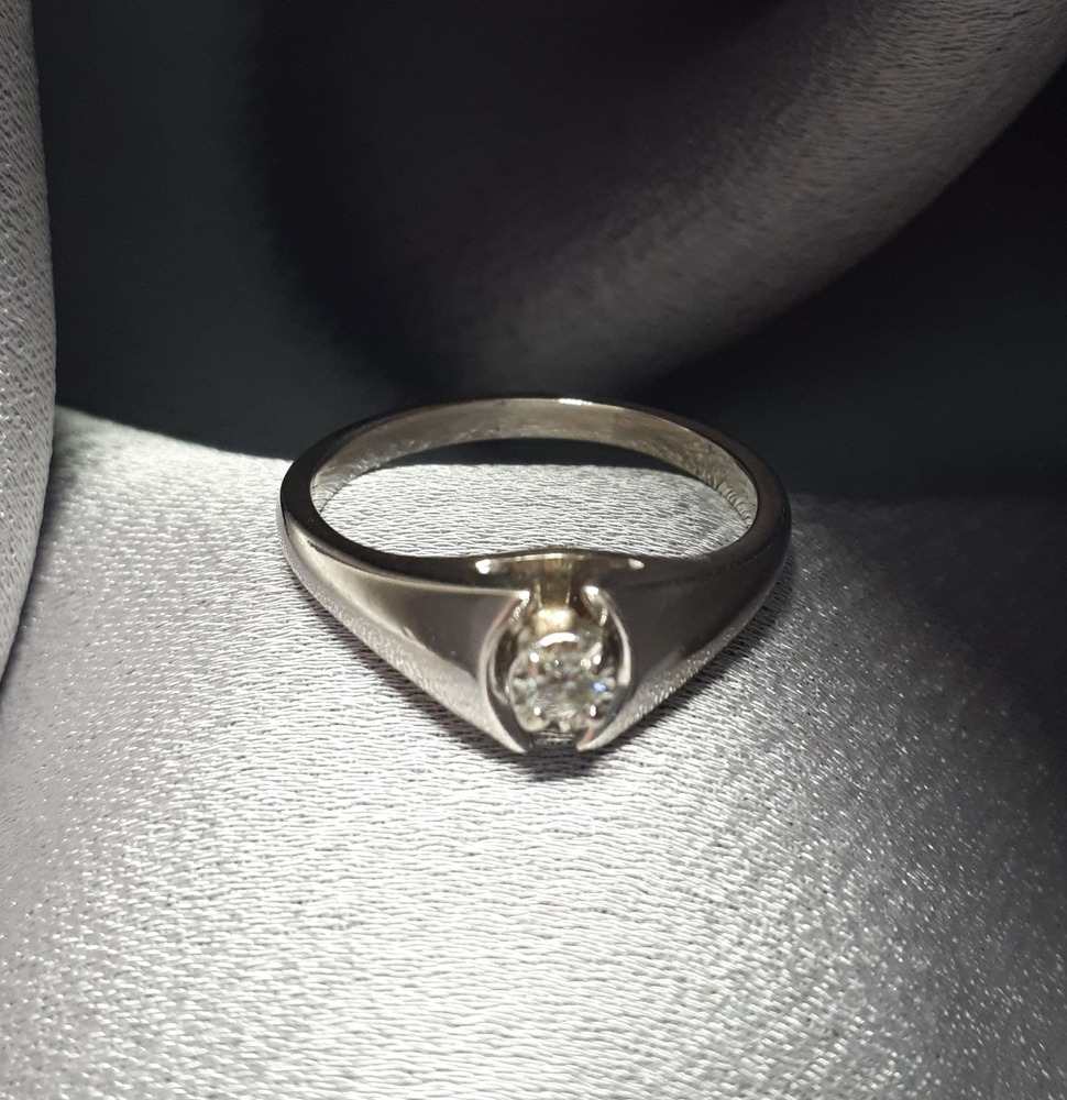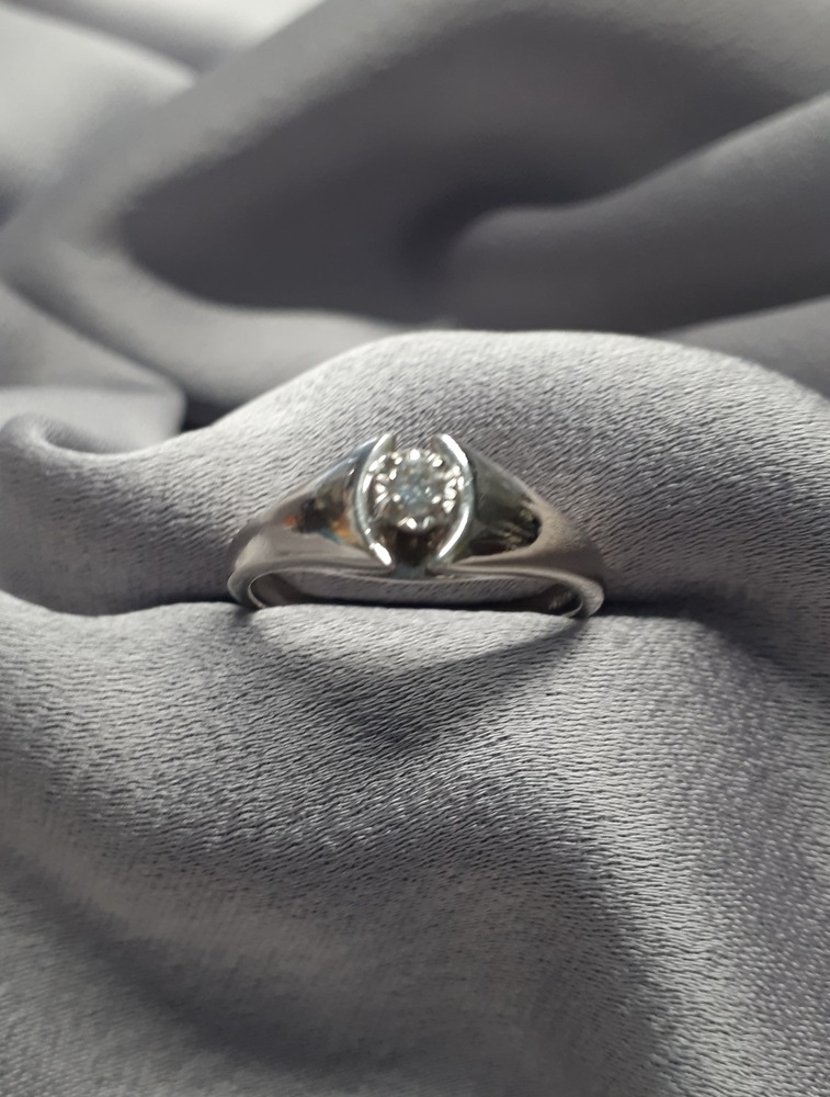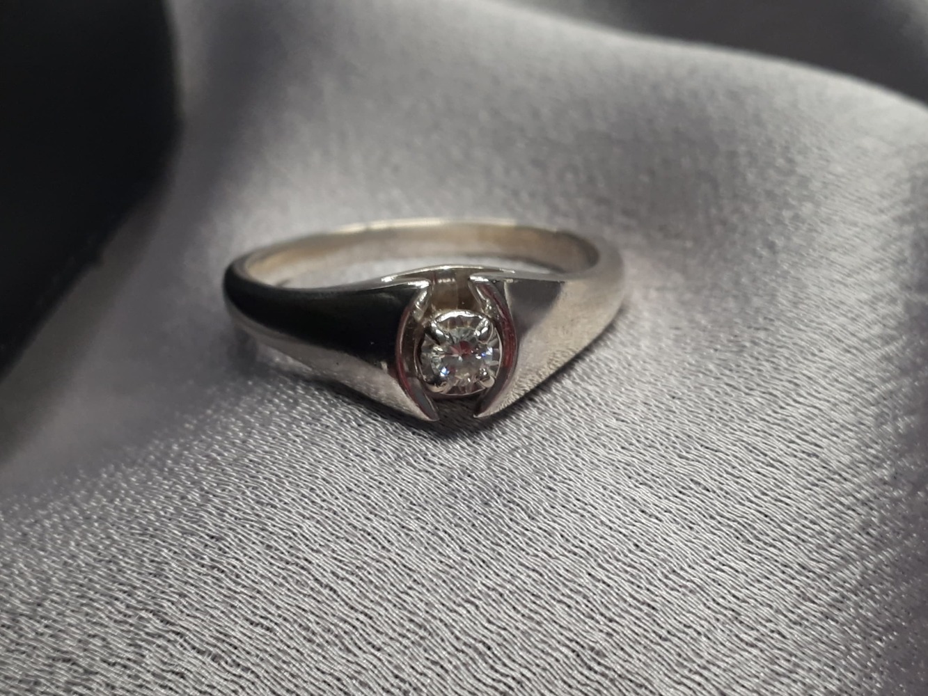 This beautiful 14k white gold, size 10 ring is a display of understated elegance. The sparkle of the round, brilliant cut diamond is sure to catch the eye.