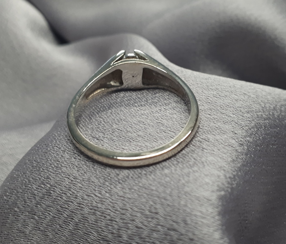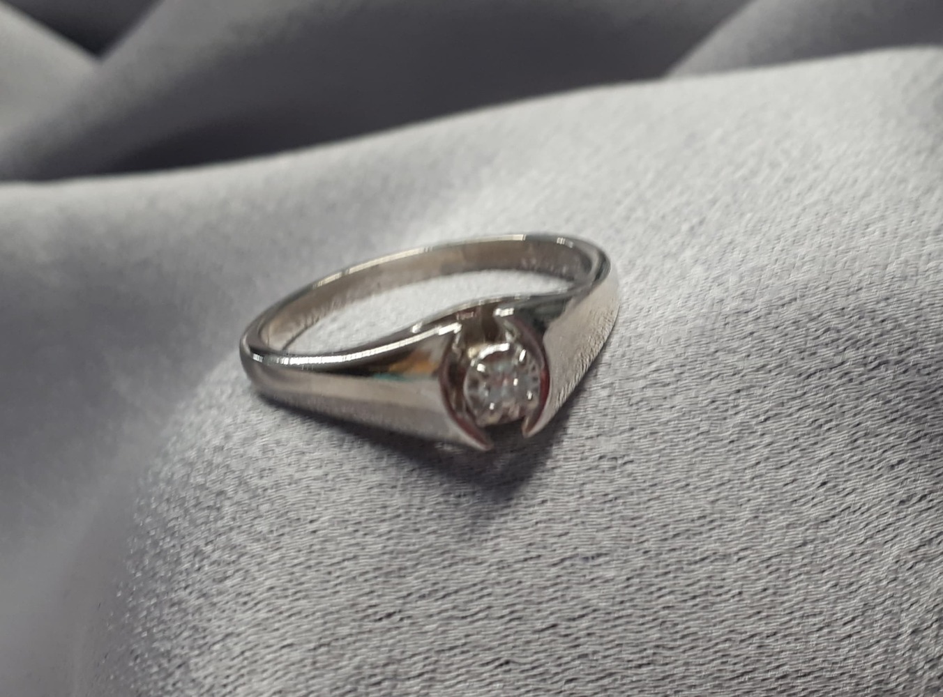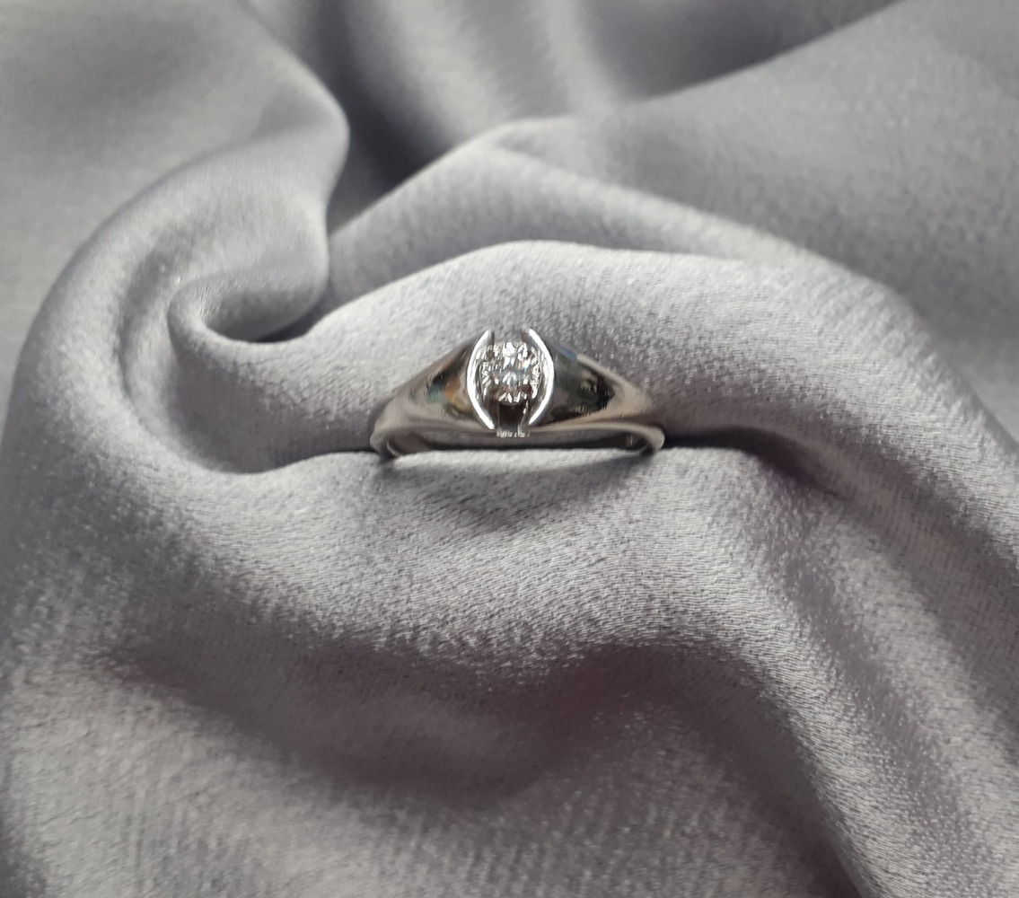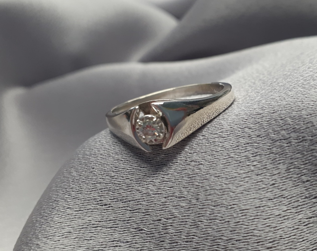 This beautiful 14k white gold, size 10 ring is a display of understated elegance. The sparkle of the round, brilliant cut diamond is sure to catch the eye.