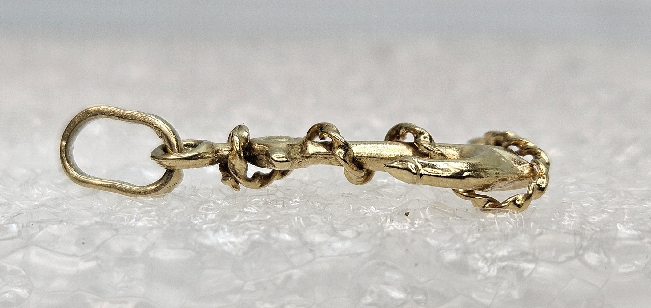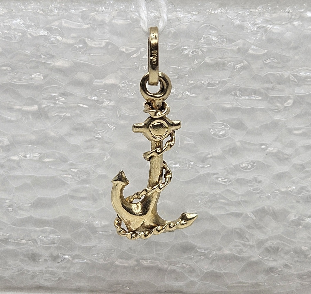 This exquisite 14k yellow gold anchor charm is an emblem of strength and stability, skillfully crafted to add a touch of nautical magic to your jewelry collection.