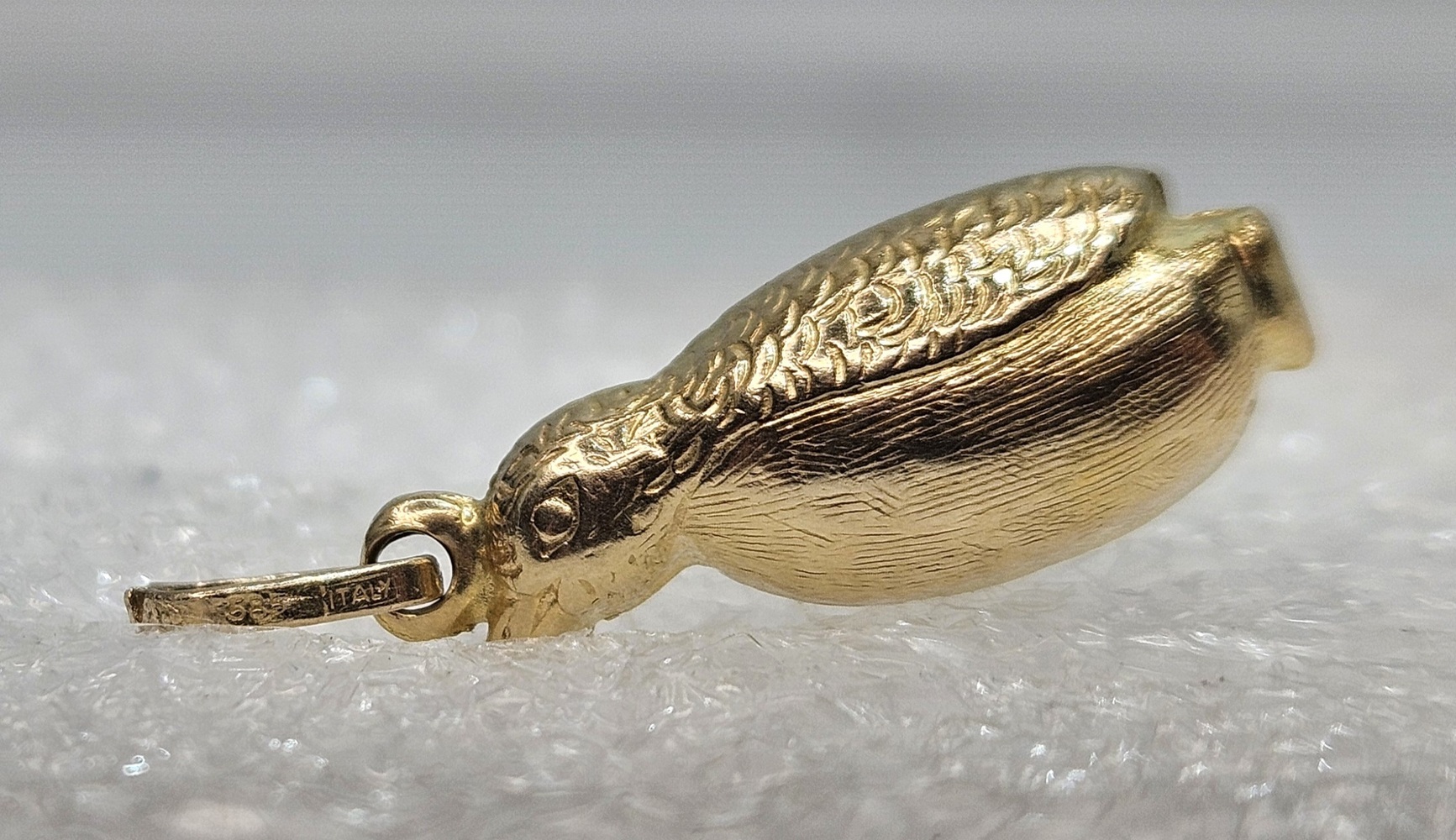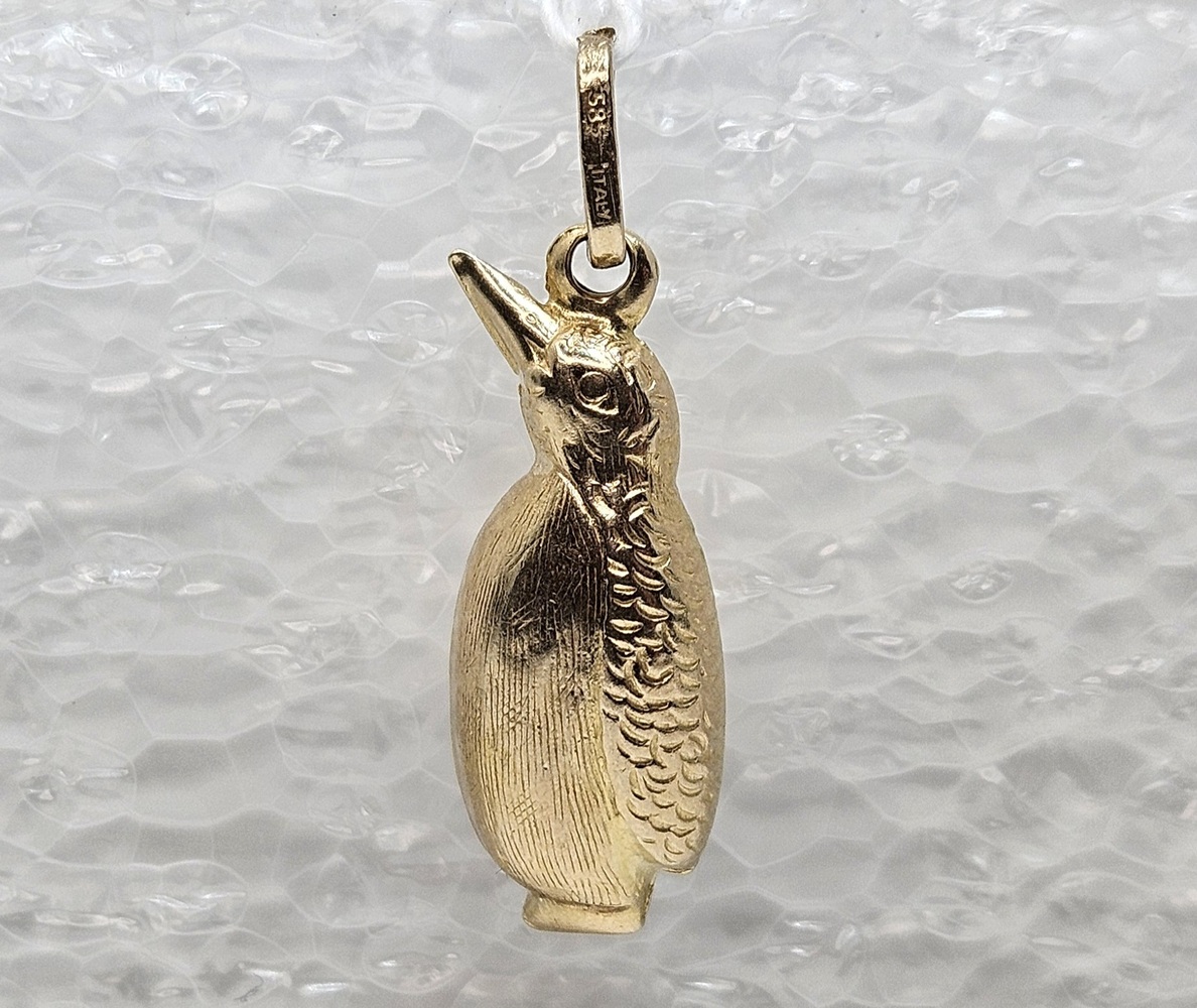 Elegant 14k yellow gold penguin charm, perfect for adding a touch of whimsy to your jewelry. Durable, high-quality, and intricately detailed for a unique style statement.
