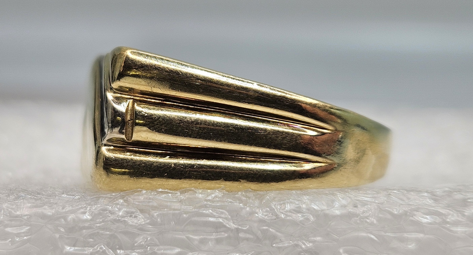 Step into the realm of style with our slantingly etched 18k Yellow Gold Band. Flaunt the diagonal design, a testament to modern class. It's not just a ring, but a striking statement, progressively marking the golden milestones of your life.