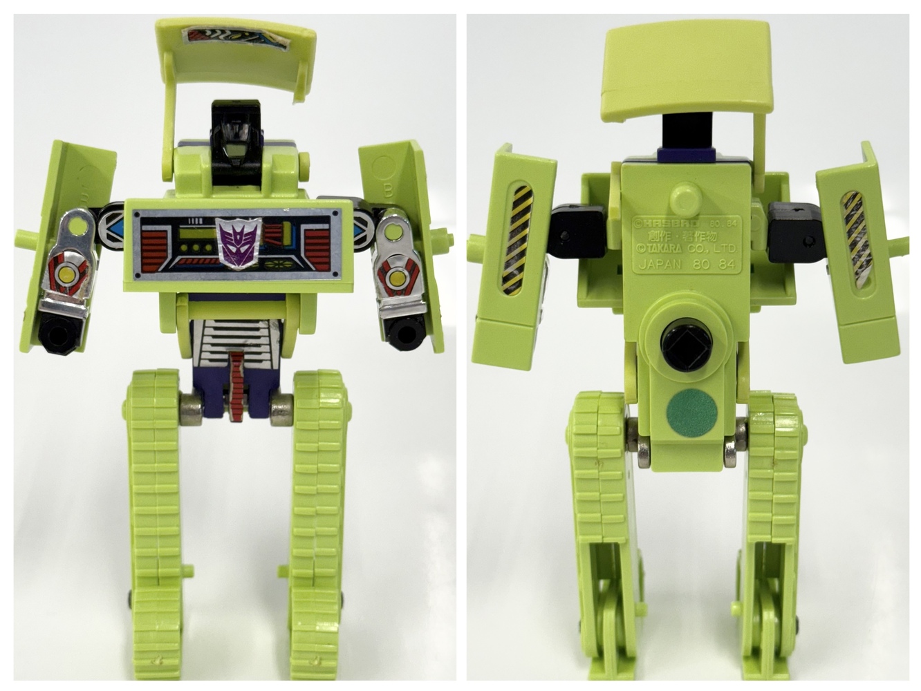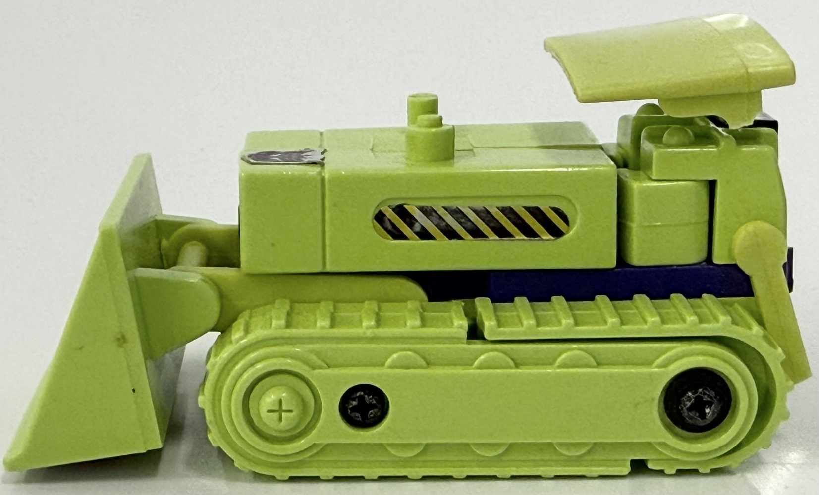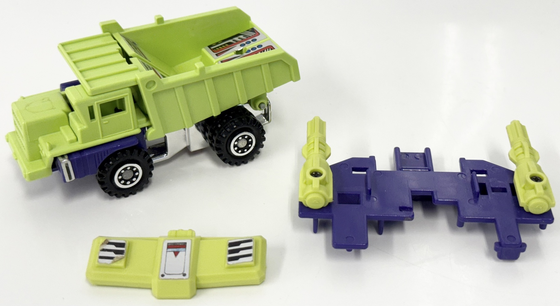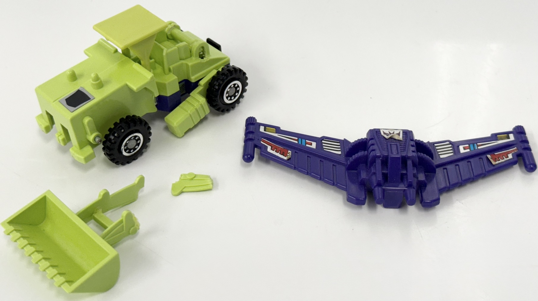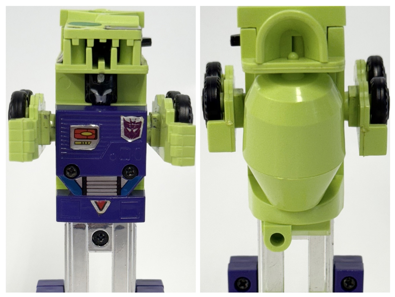 Please also note, when assembled, the Devastator figure cannot stand on it's own, as the foot portion of the left foot (shovel of the Scrapper action figure) has broken off.