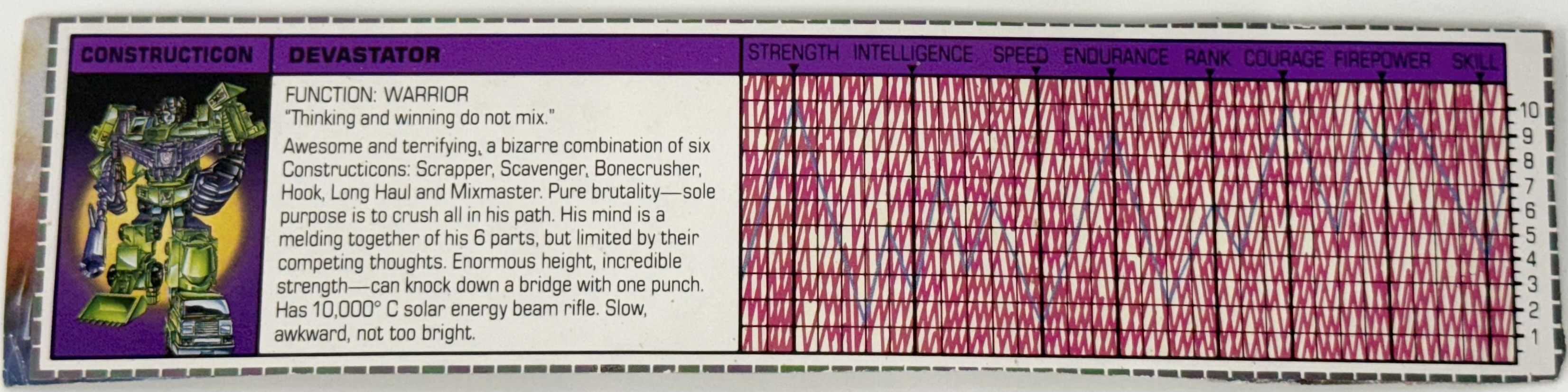 This listing includes the Bonecrusher, Hook, Scrapper, Long Haul, Scavenger, and Mixmaster action figures, Devastator tech specs, and some accessories.