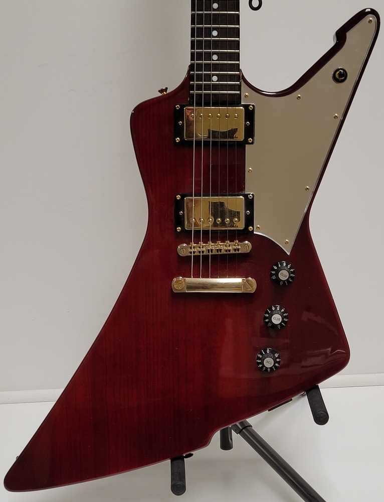 The neck appears to be replaced because it does not match any necks originally on the Epiphone Explorer guitar