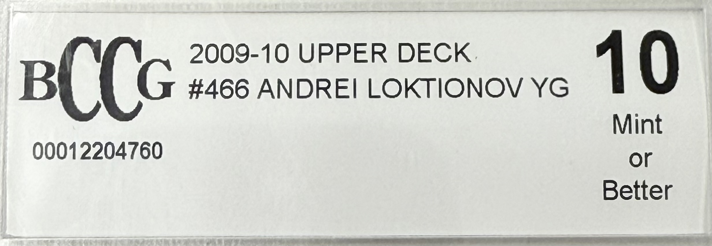 This card is graded by Beckett BCCG at a 10 Mint or Better