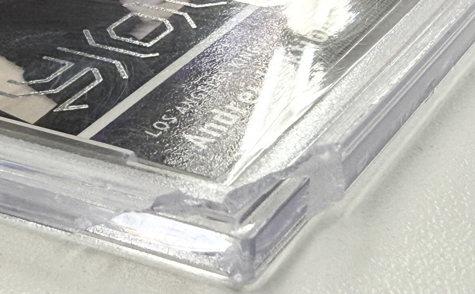 Please note, the plastic on the bottom left of the card has a piece missing, which can be seen in photos.