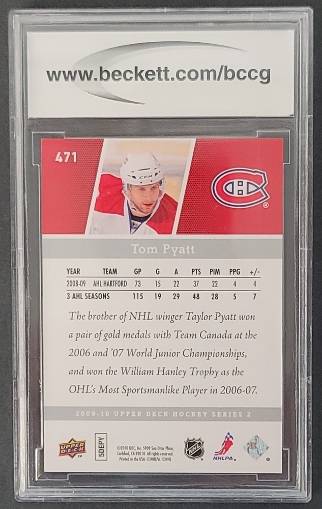 2009-10 Upper Deck UD Series 2 TOM PYATT Young Guns YG #471 Beckett Graded 10 | Avenue Shop Swap & Sell