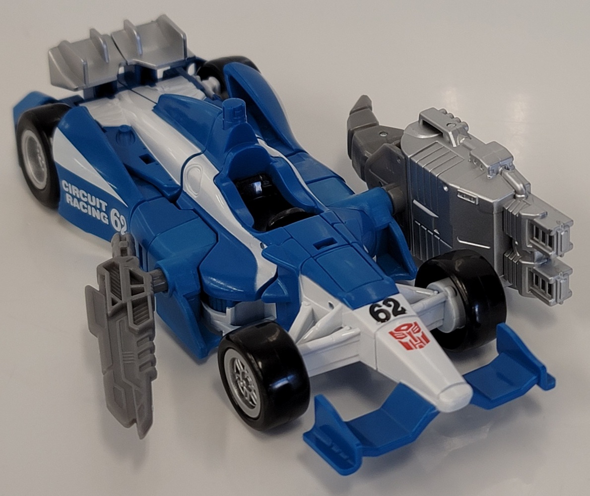 Put the cloaking power of Mirage in the hands of a Combiner and look out — that's 30 tons of steel sneaking up behind you and walloping you with a punch you can't see coming. The Decepticons won't know what hit them. Combine and convert for awesome Transformers action! This cover ops Mirage figure brings his blaster to the fight when he’s in robot mode, and he converts fast to race car mode when chasing down Decepticons is the primary objective. But he can also become an arm or a leg when the battle calls for you to build a truly hardcore Optimus Maximus warrior!