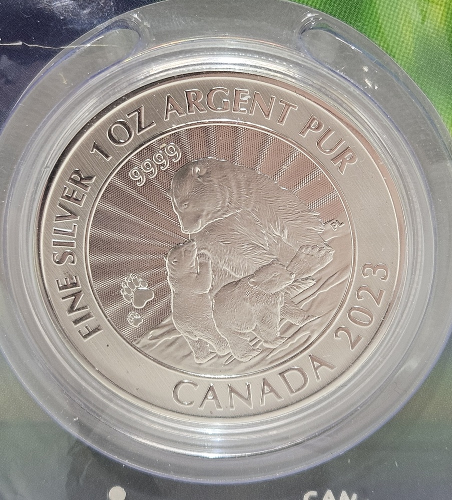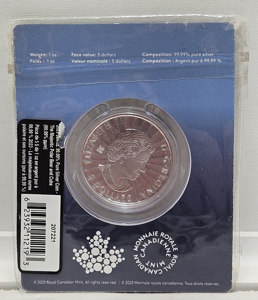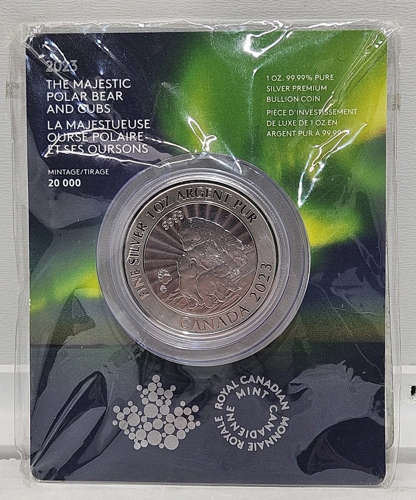 Discover the epitome of fine silver with the Canada $5 Silver 2023 Polar Bear and Cubs Coin, a distinguished piece of bullion that boasts an exceptional purity of .9999. This uncirculated coin captures the majestic allure of Canada's iconic wildlife, with intricate details bringing the serene scene of a polar bear and its cubs to life.Crafted to commemorate, this coin is a tribute to both the rich Canadian heritage and the allure of investment-grade silver. Not certified, it stands as a testament to the craftsmanship from the Royal Canadian Mint, making it a coveted item for collectors and investors alike who value rarity and craftsmanship in their numismatic pursuits.