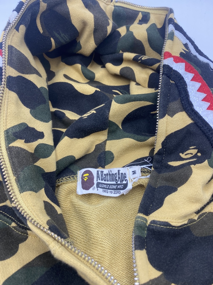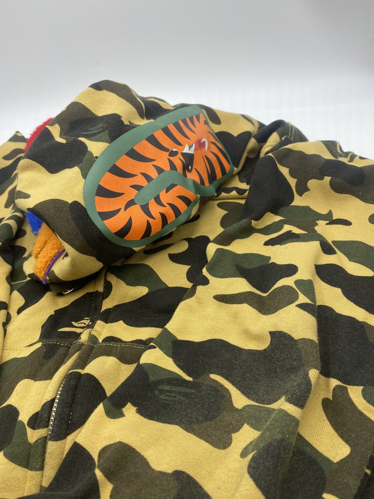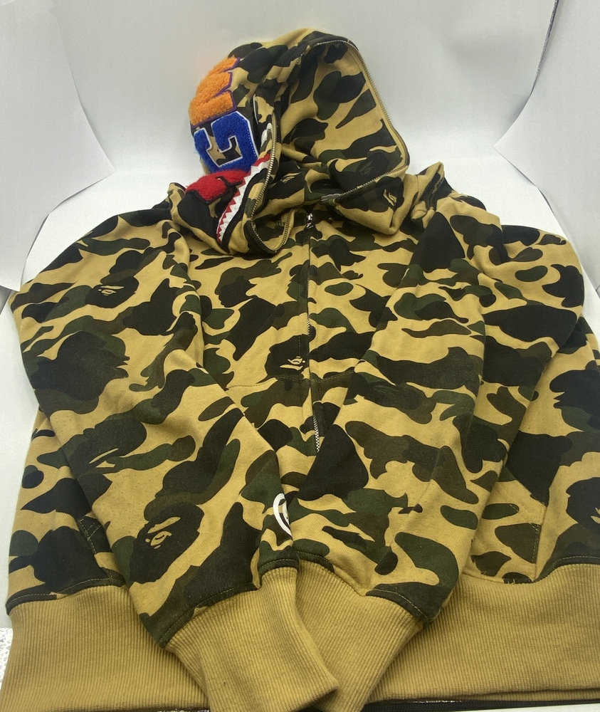 Step into the wild side with the exclusive Bathing Ape Camo Brown Shark Full Zip Hoodie. Masterfully crafted in size M, this limited edition piece blends urban streetwear with military camo flair, topped with an audacious shark design. Every thread screams bold independence. Stand out, strike with style.
