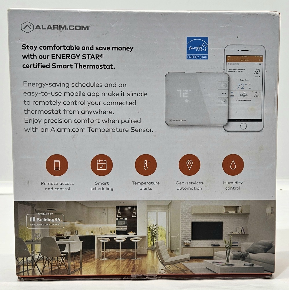Alarm.com Smart Thermostat is a high-tech, energy-efficient device for home automation. It offers smart scheduling, remote access control, temperature precision and integration with Alarm.com systems for comfort and savings. This smart thermostat enhances security and promotes a relaxed, customized living environment.