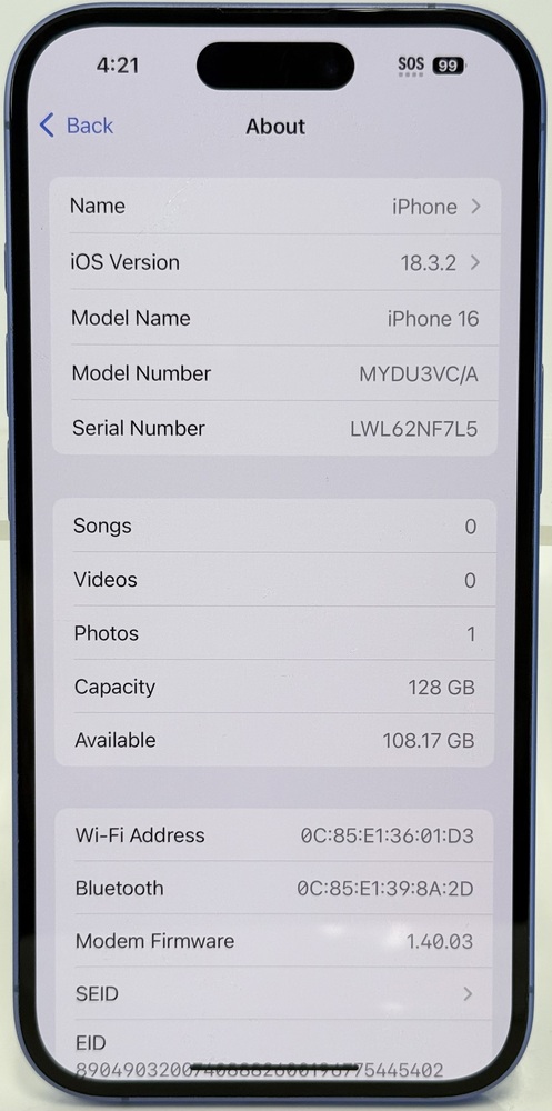 Apple Iphone 16 Ultramarine 128GB Smartphone