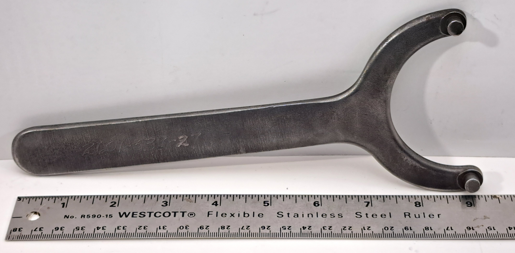Item Appearance: Spanner has light scuffing/marking/scratching from use/handling/storage.  Reverse of handle has numbers lightly engraved into surface.