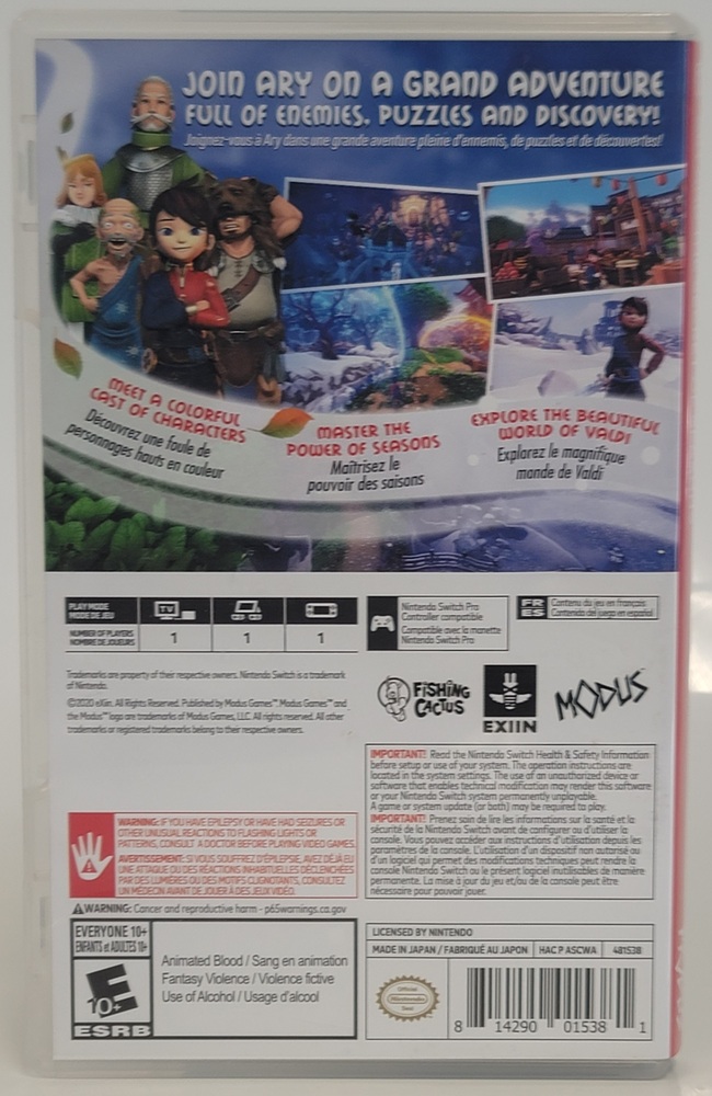 Ary and the Secret of Seasons is an award-winning adventure game following a young girl named Aryelle, or Ary, as she journeys across the great world of Valdi. By becoming the Guardian of Winter, Ary gains the ability to manipulate the seasons around her. Ary will learn to control the seasons and use them to defeat enemies, overcome obstacles, and solve complex puzzles on her adventure across Valdi.