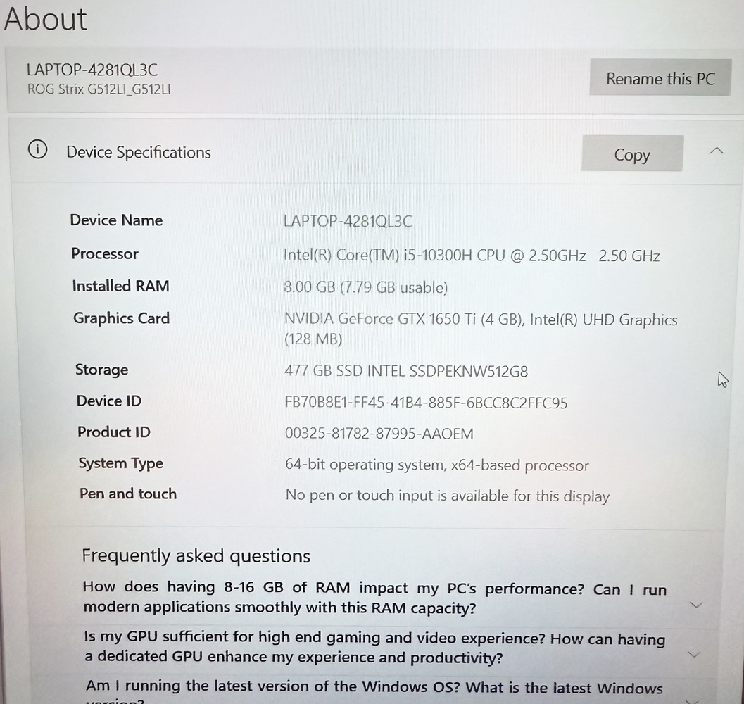 Asus Rog Strix G15 15.6" 512GB - 8GB Ram Gaming Laptop