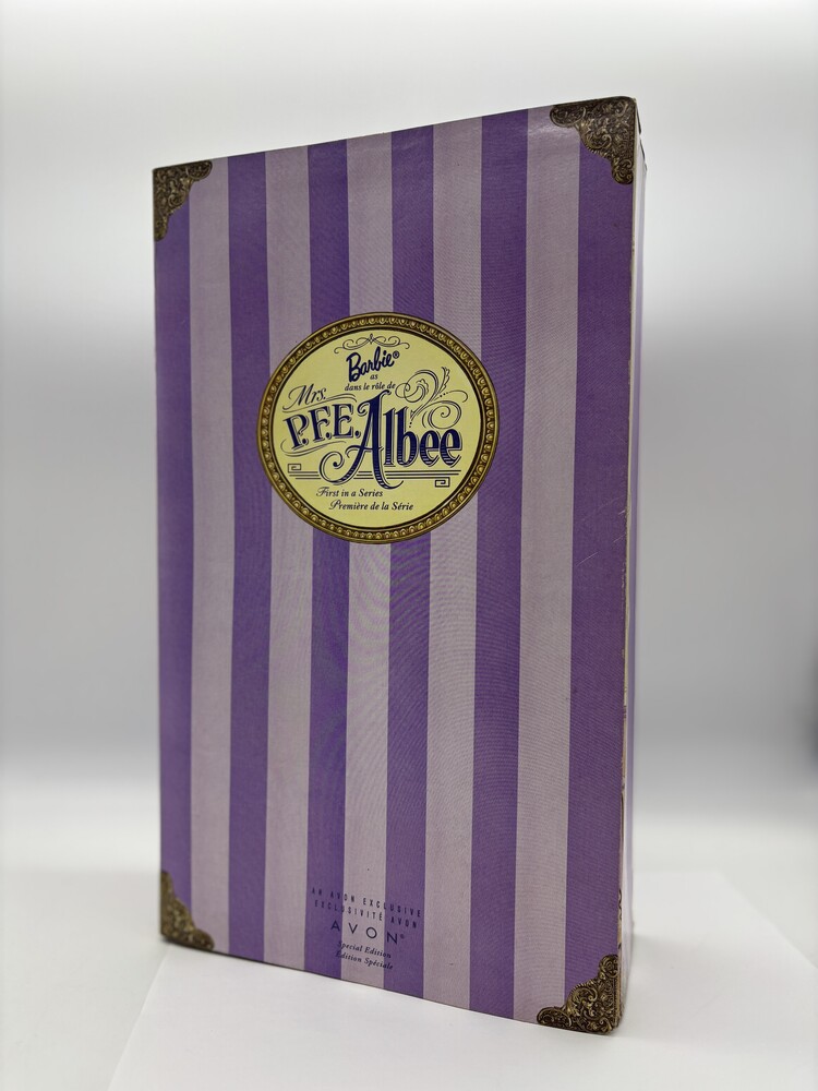 Experience a timeless charm with Barbie Limited Edition - Mrs. P.F.E Albee. A spectacular homage to the first Avon lady, adorned in luxurious Victorian couture. This limited piece is a blend of play, elegance, and collectible art. A possession of priceless memories in her intricate details.