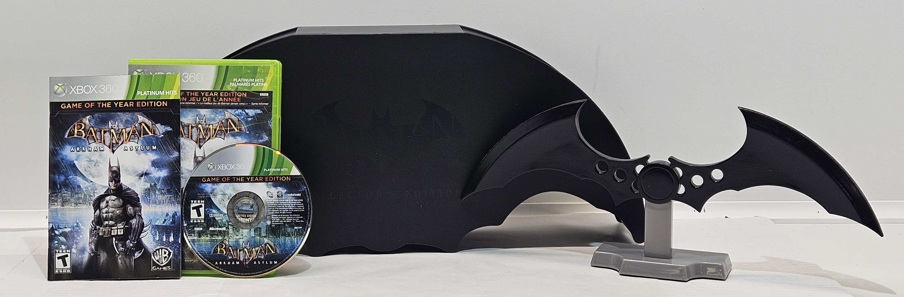 **Please note this collectors edition ONLY includes the original box and Batarang. There is some minor box damage to the case that can be seen in photos, along with some scratches on the game disc. Please see photos for more details**