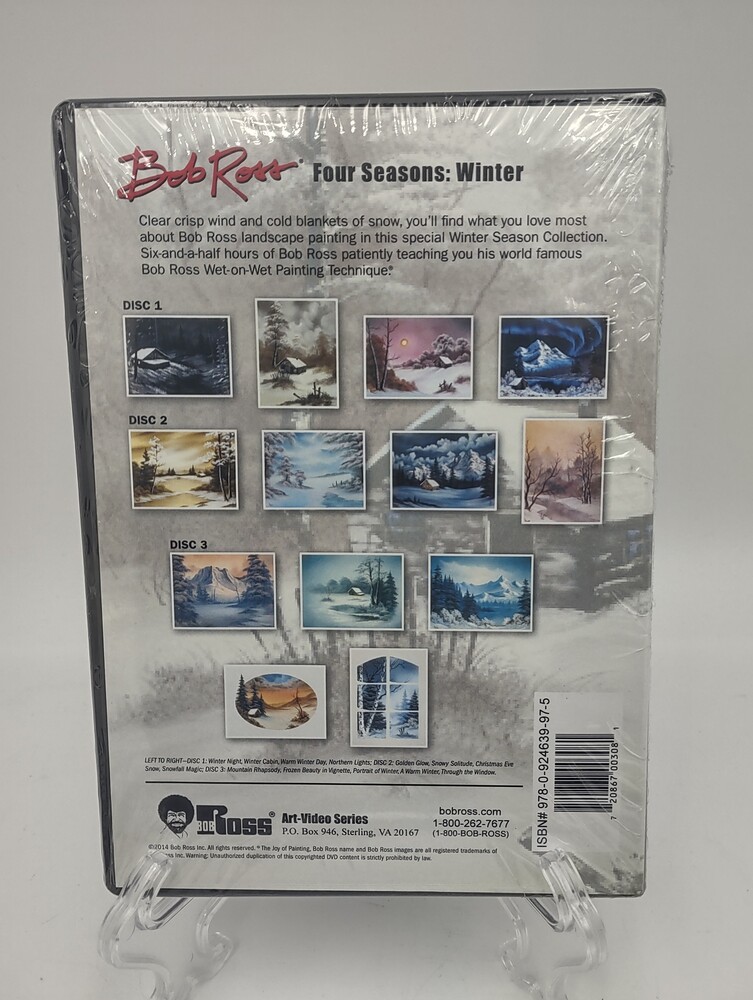 Clear crisp wind and cold blankets of snow, you'll find what you love most about Bob Ross landscape painting in this special Winter Season Collection! Six and a half hours of Bob Ross patiently teaching you his world famous wet-on-wet painting technique.