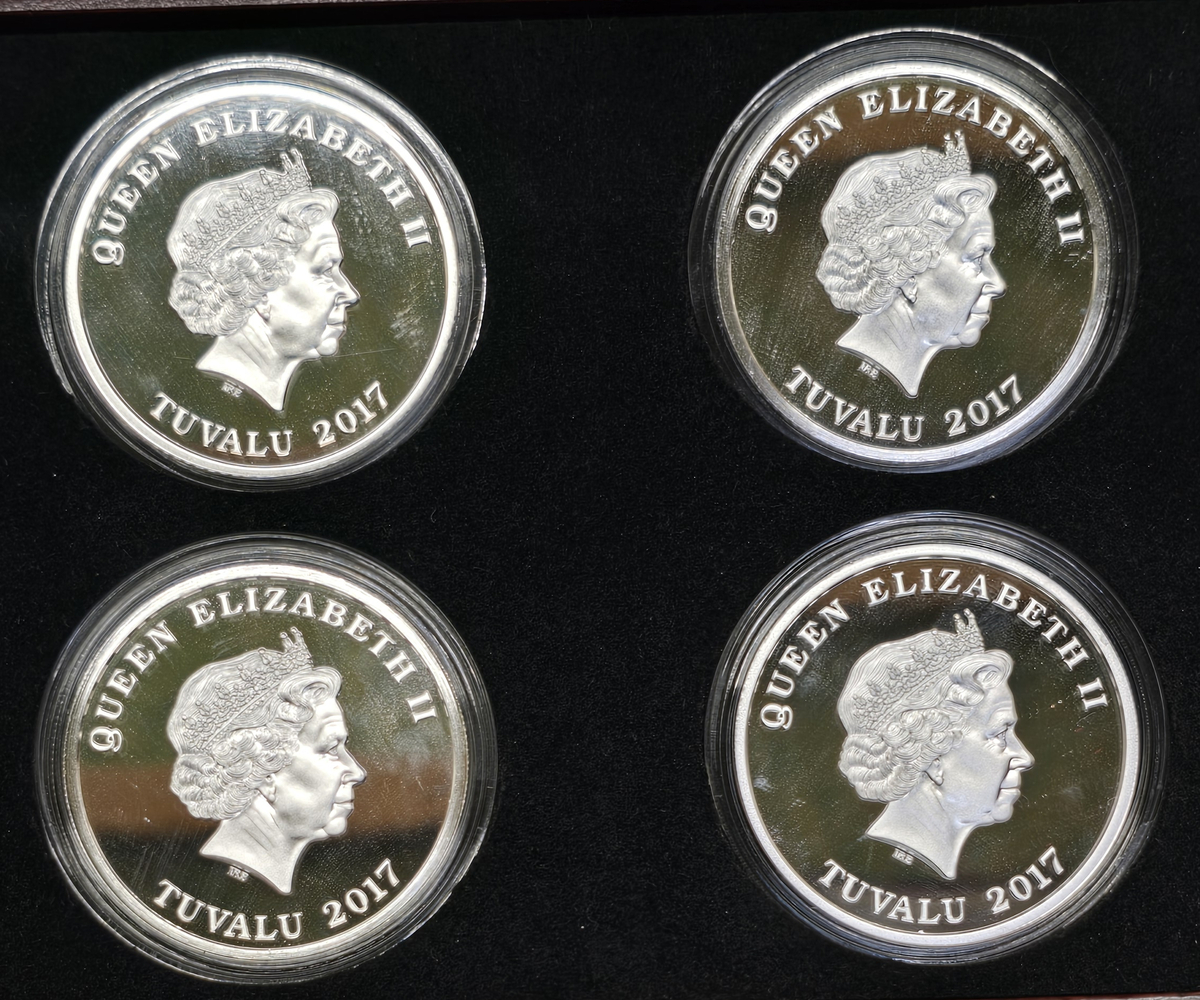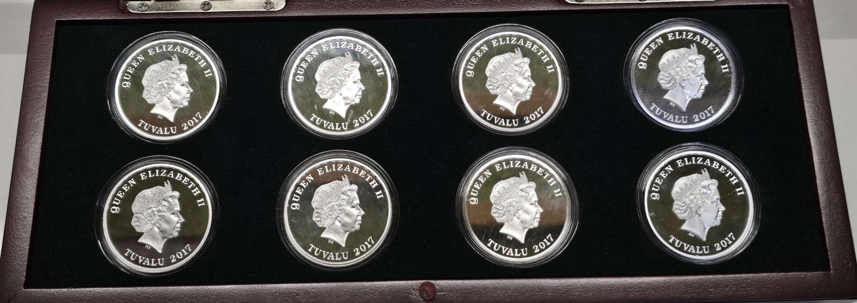 Collection Condition: Preowned, inspected, beautiful intact condition. Coins are immaculate and held in individual capsules. Wooden case is beautiful and holds the collection securely.