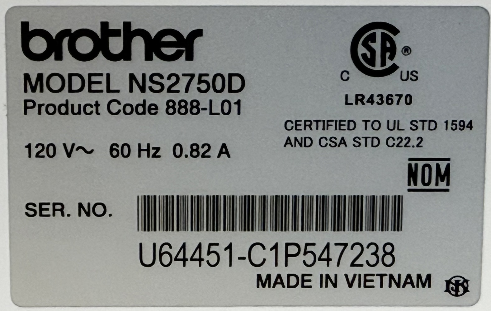 Brother NS2750D The Charmer Sewing/Embroidering/Quilting Machine