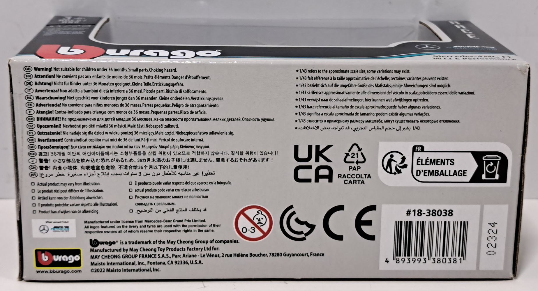 What's Included: Bburago Mercedes AMG F1 W12 E Performance 1/43 scale model