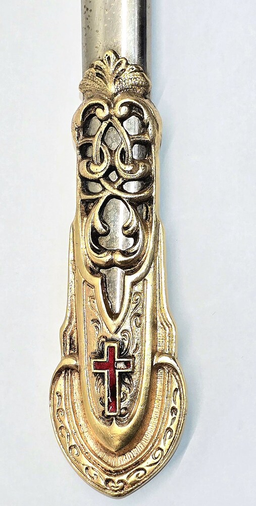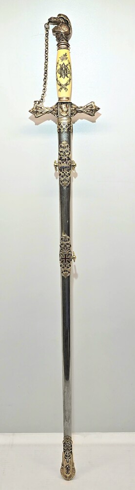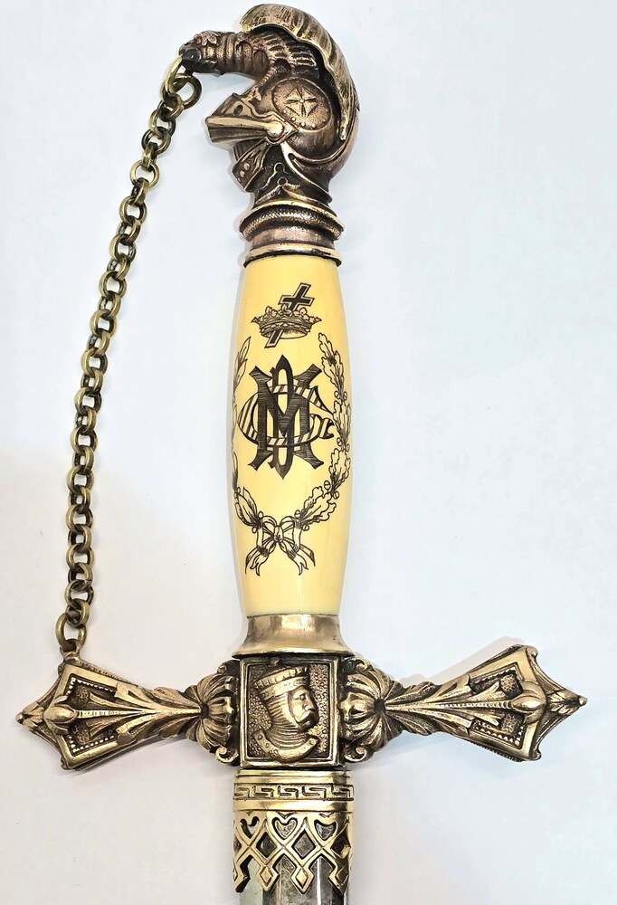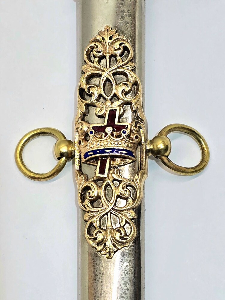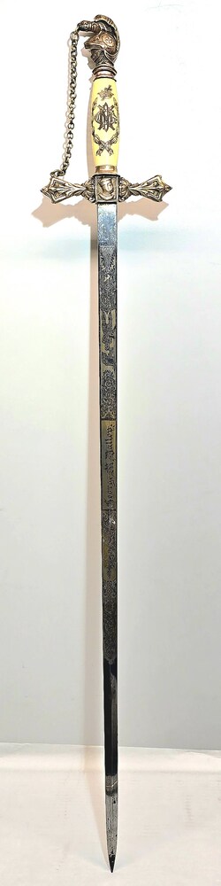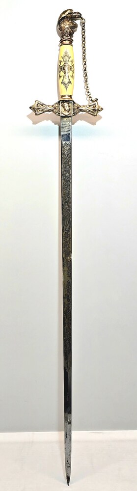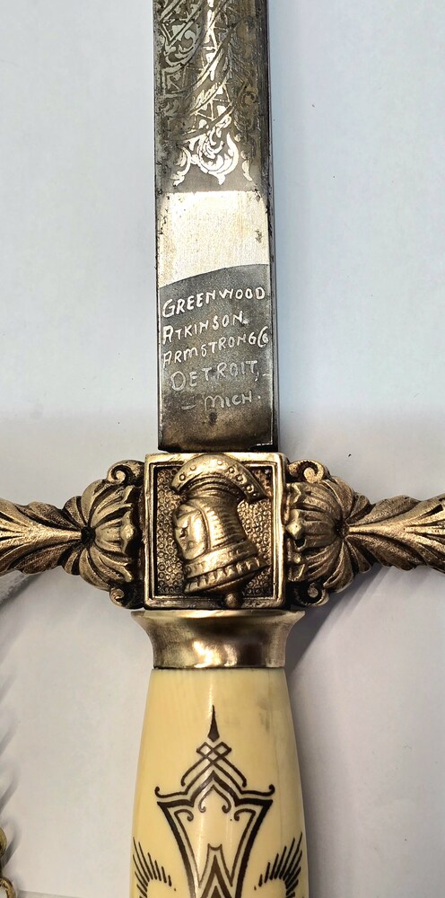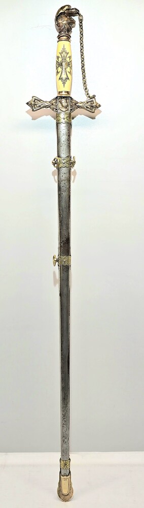 Ceremonial Masonic Templar sword with scabbard, made by Greenwood, Atkinson Armstrong Co. Detroit Michigan in the late 19th century. Original owner's name, George M Dalley, imprinted on blade.