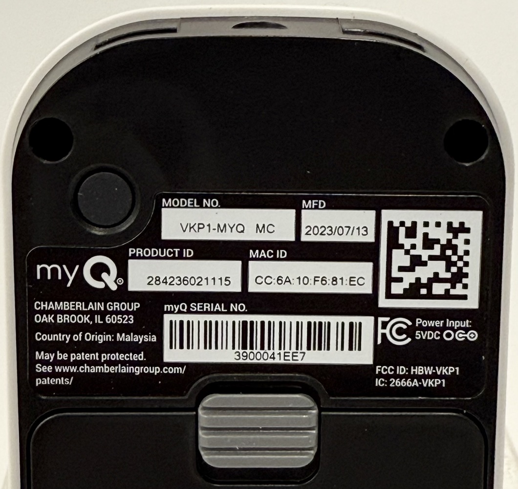 Chamberlain My Q Smart Garage Video Keypad *IN OPEN BOX*