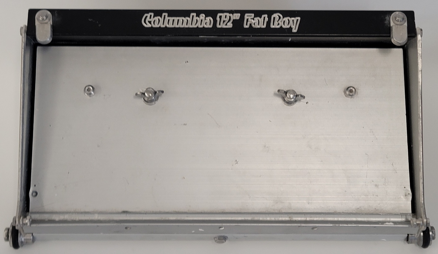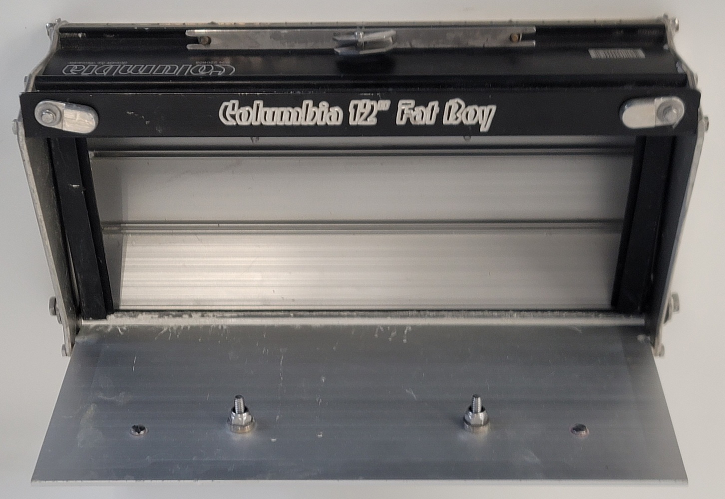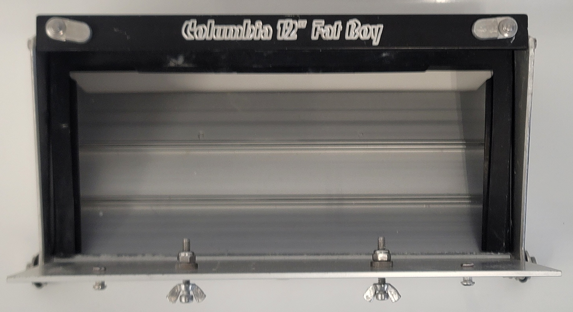 Columbia 12" Fat Boy drywall flat finishing box holds 30% more mud than the standard Columbia 12" flat box. It works great for running the first coat on flat joints and butt seams. With 30% more mud, you can go longer distances without having to fill it up at the pump. Easy-open door plate makes for very easy clean-up and will fit on all major brands of flat box handles.