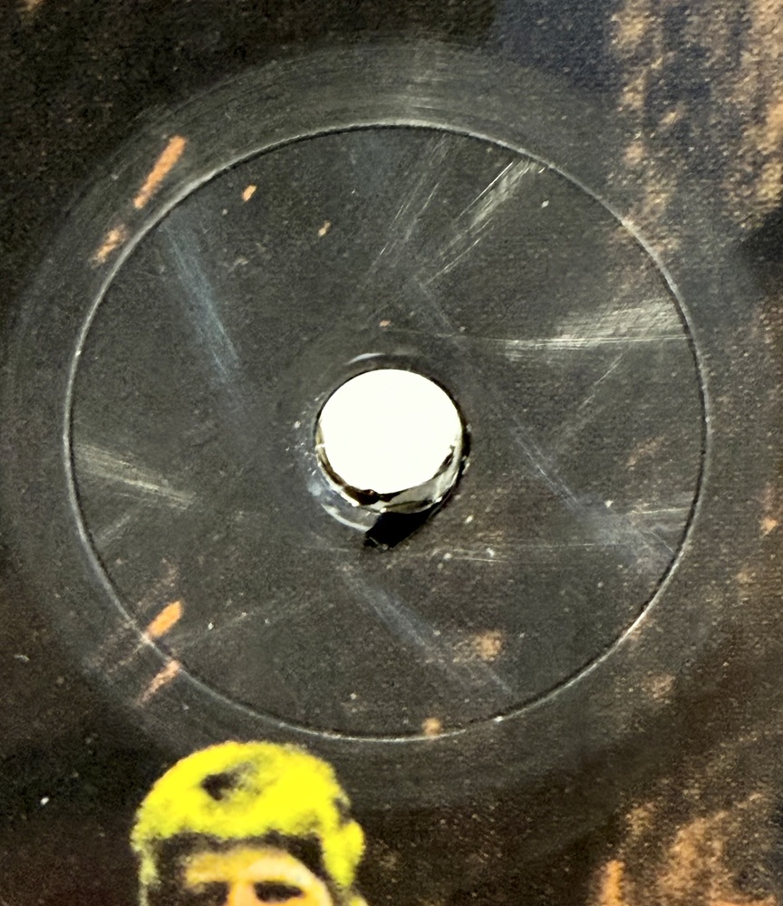Please note, the spindle hole looks as if it has been previously repaired, which can be seen in photos.