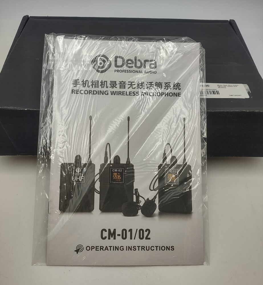 Debra Professional Audio Set Includes 2 Lavalier Microphones, 2 Transmitters, 1 Receiver, and Manual.